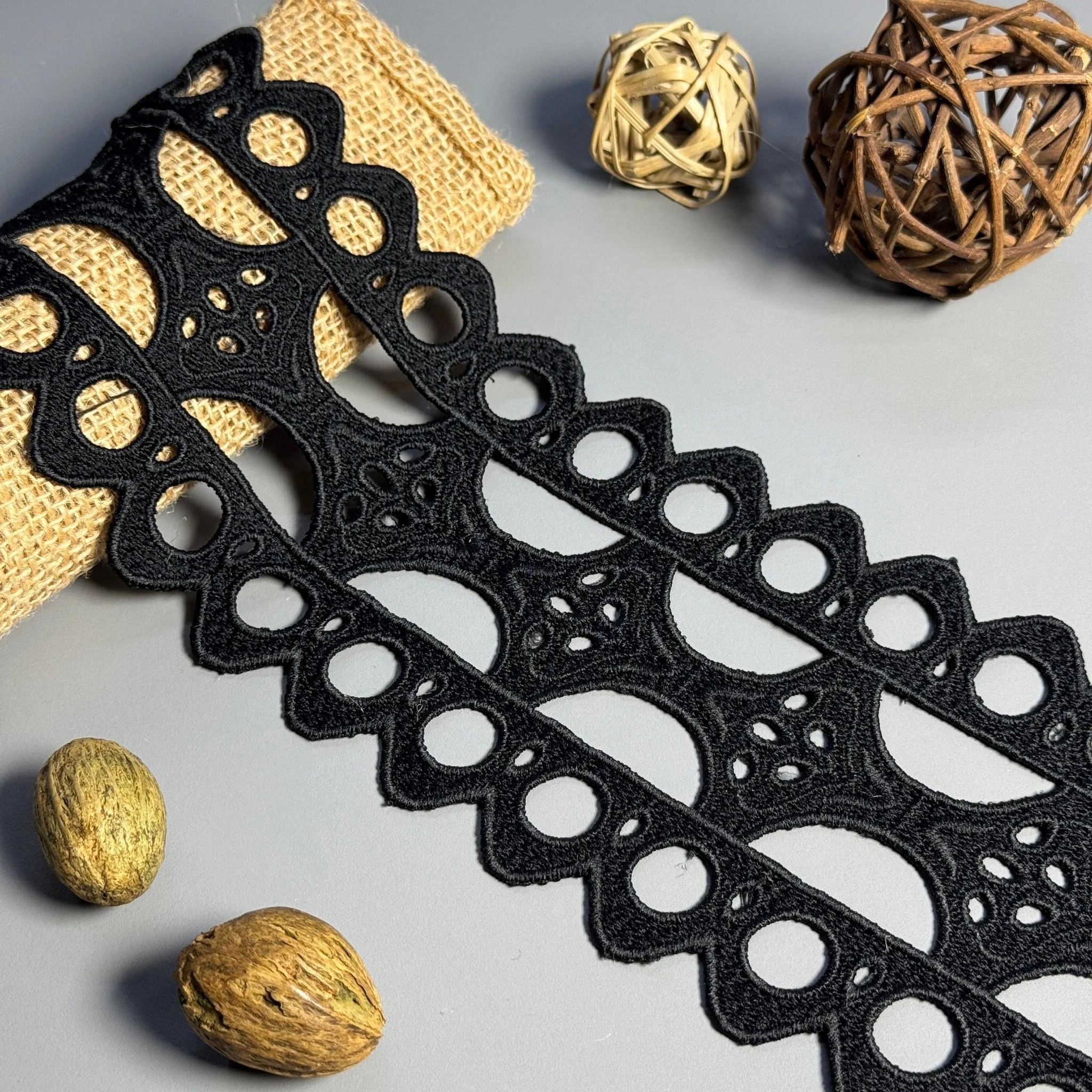 Мереживо поліестер "Перлинна хвиля" 10 см.(1 м.), чорний (20 метрів)