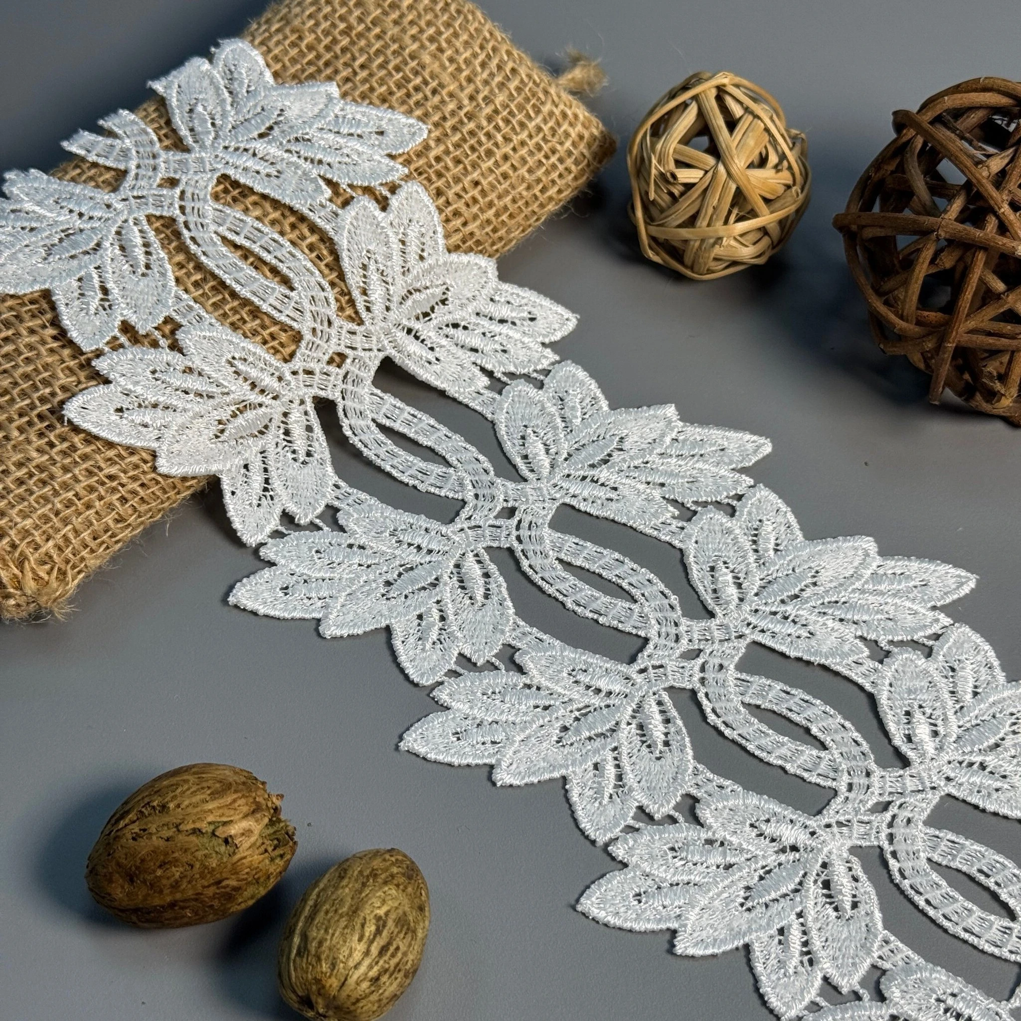 М’яке, міцне й зносостійке мереживо з поліестеру чудово підходить для оздоблення суконь, блуз, спідниць, білизни, аксесуарів та декору.