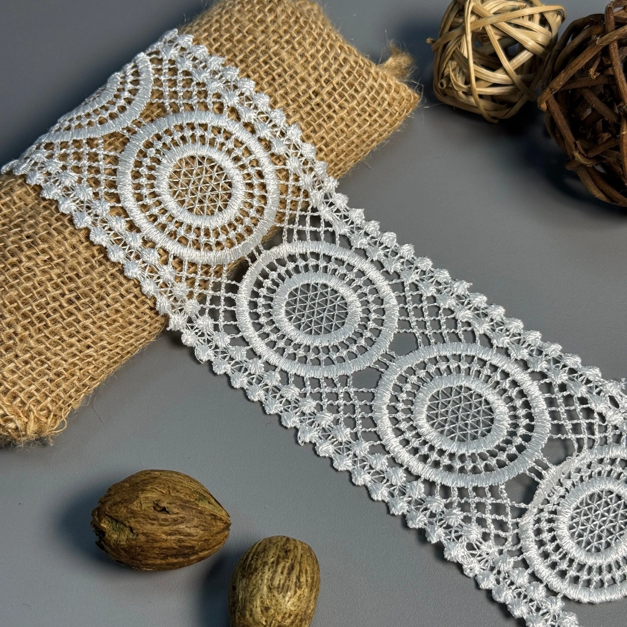 М’яке, міцне й зносостійке мереживо з поліестеру чудово підходить для оздоблення суконь, блуз, спідниць, білизни, аксесуарів та декору.