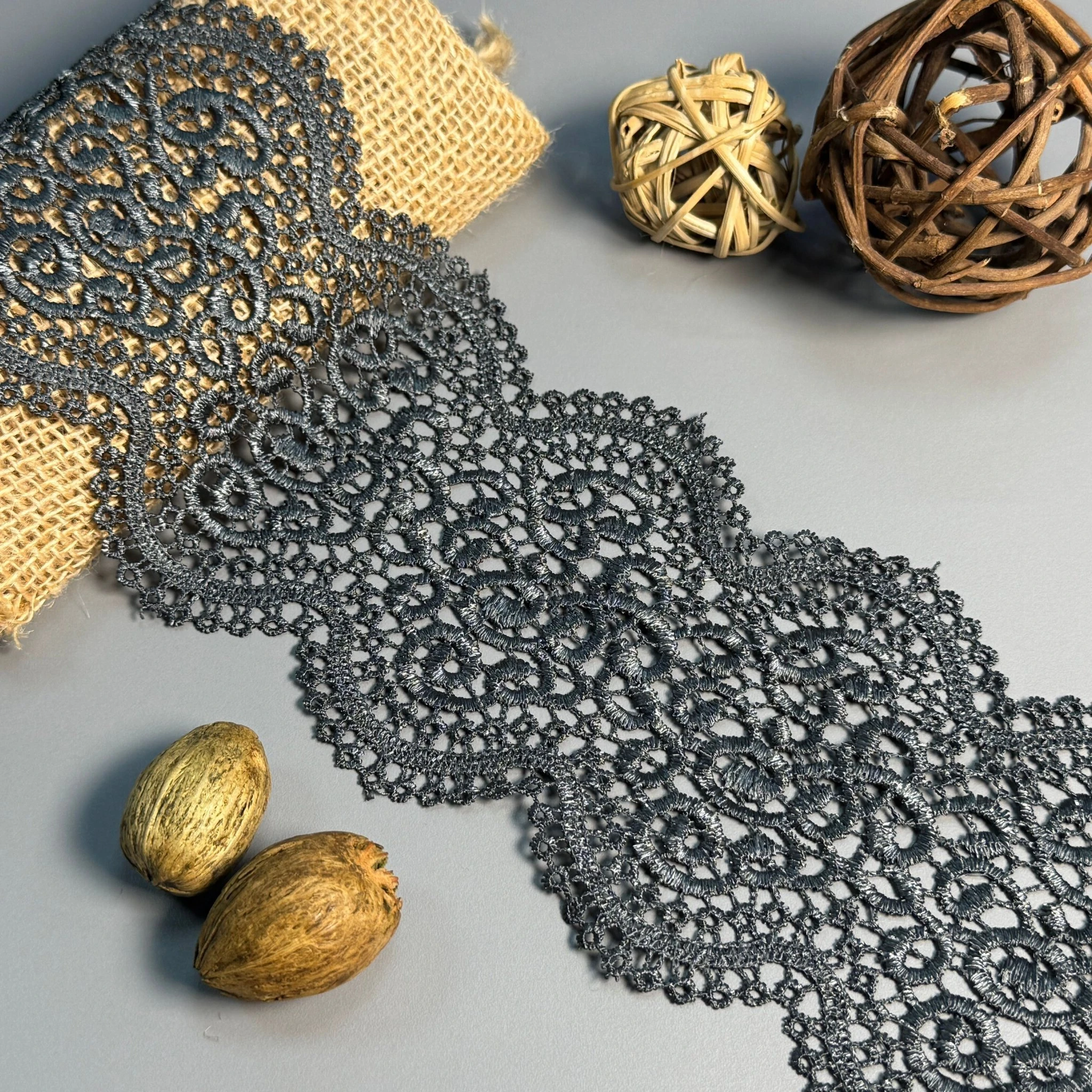 Мереживо поліестер "Кремова лінія" 11 см.(1 м.), темний сірий (20 метрів)