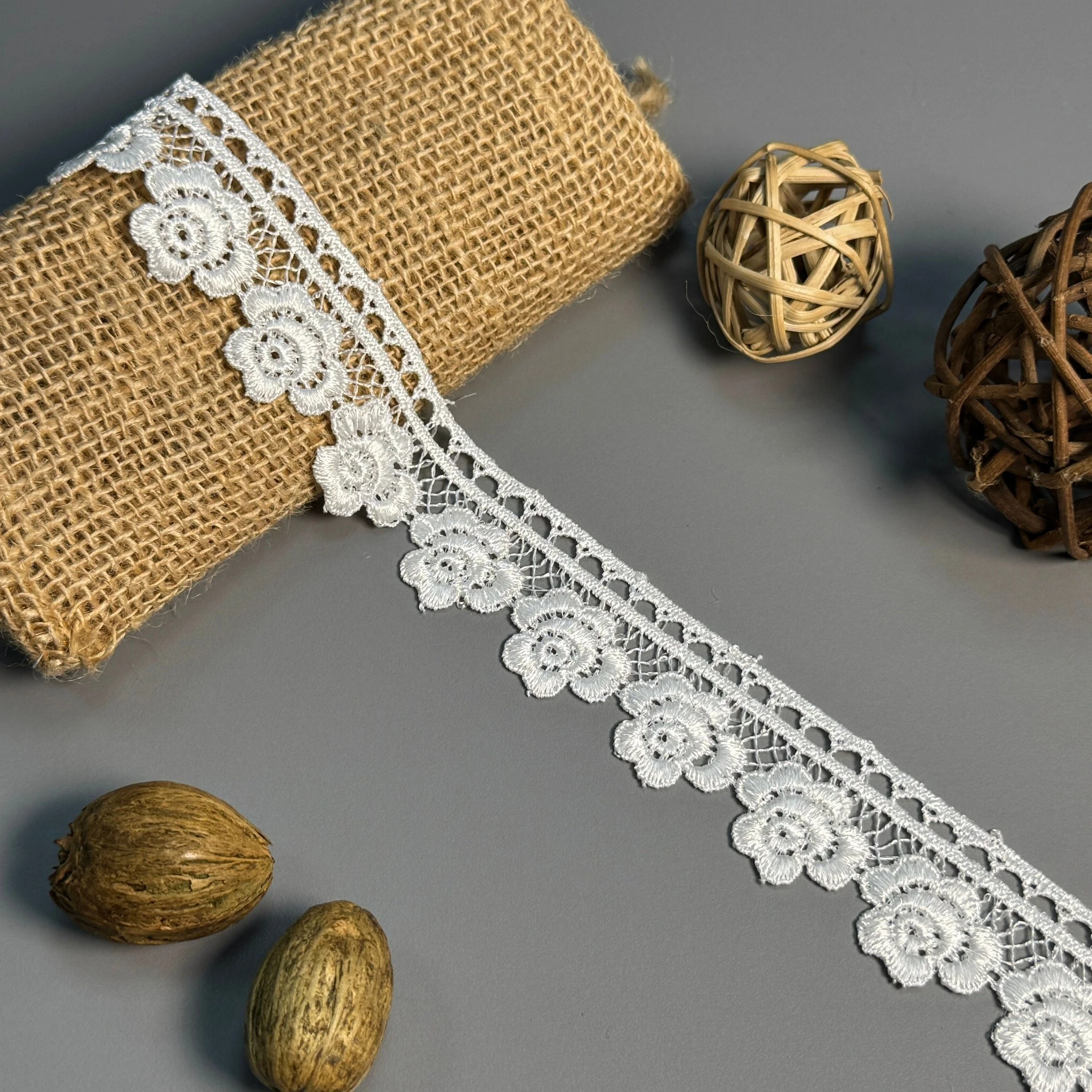 М’яке, міцне й зносостійке мереживо з поліестеру чудово підходить для оздоблення суконь, блуз, спідниць, білизни, аксесуарів та декору.