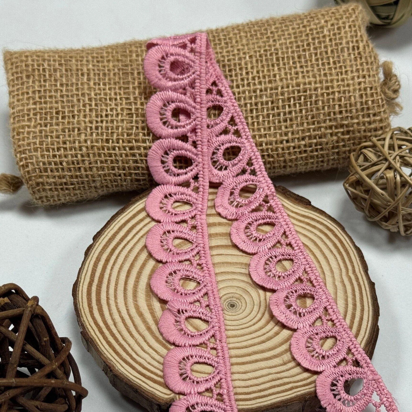 Мереживо поліестер "Ніжне сяйво" 2,5 см.(1 м.), темно рожевий