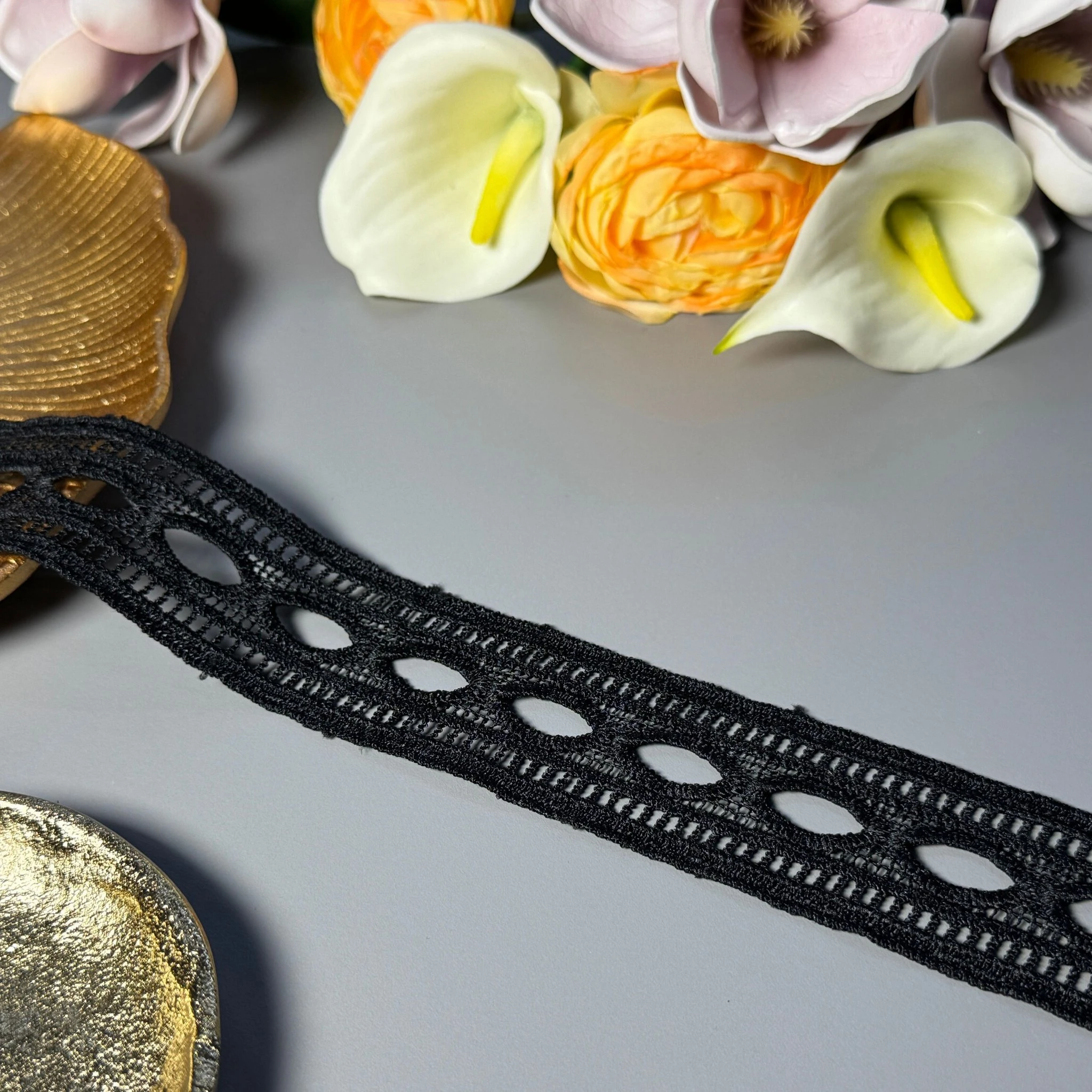 М’яке, міцне й зносостійке мереживо з поліестеру чудово підходить для оздоблення суконь, блуз, спідниць, білизни, аксесуарів та декору.