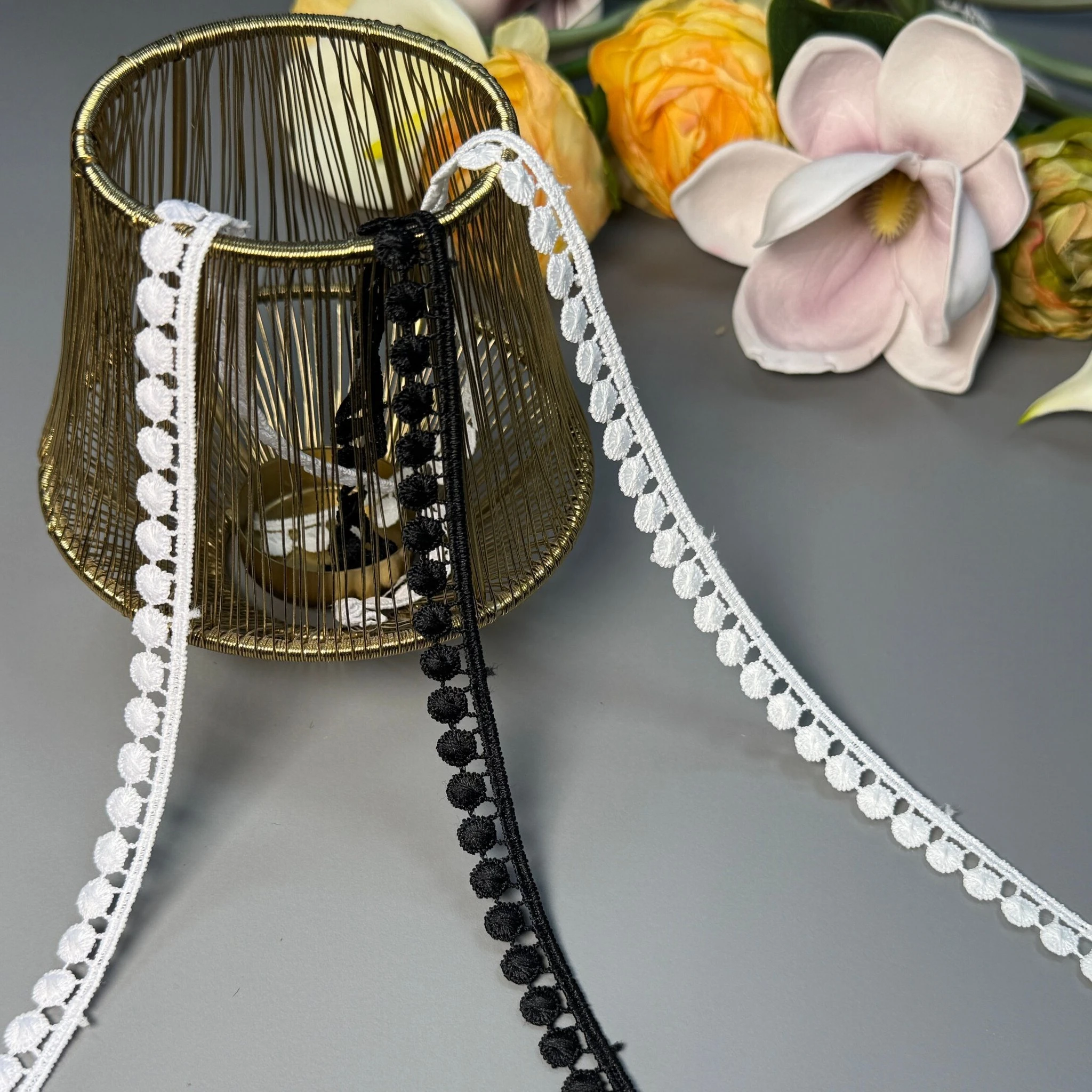 М’яке, міцне й зносостійке мереживо з поліестеру чудово підходить для оздоблення суконь, блуз, спідниць, білизни, аксесуарів та декору.