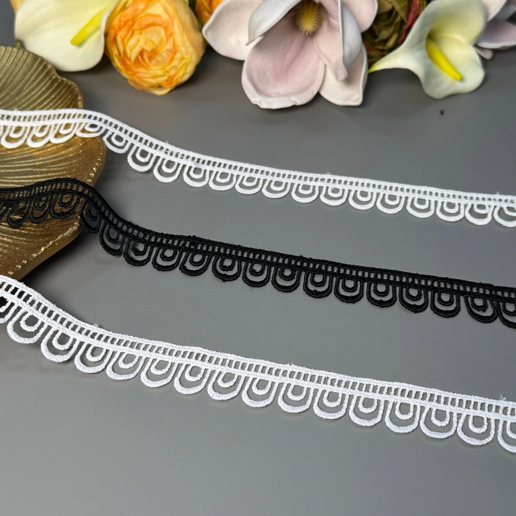 М’яке, міцне й зносостійке мереживо з поліестеру чудово підходить для оздоблення суконь, блуз, спідниць, білизни, аксесуарів та декору.