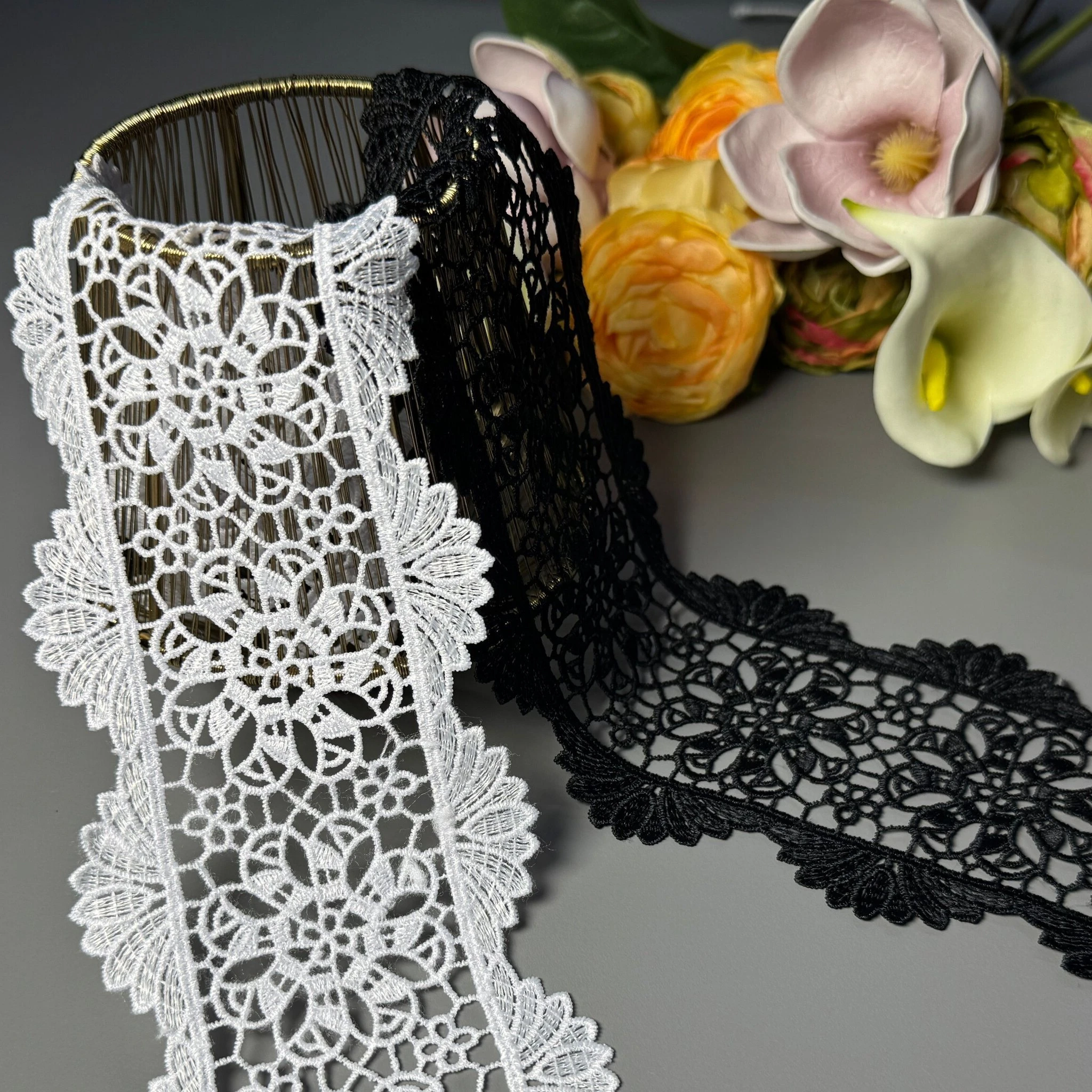 М’яке, міцне й зносостійке мереживо з поліестеру чудово підходить для оздоблення суконь, блуз, спідниць, білизни, аксесуарів та декору.