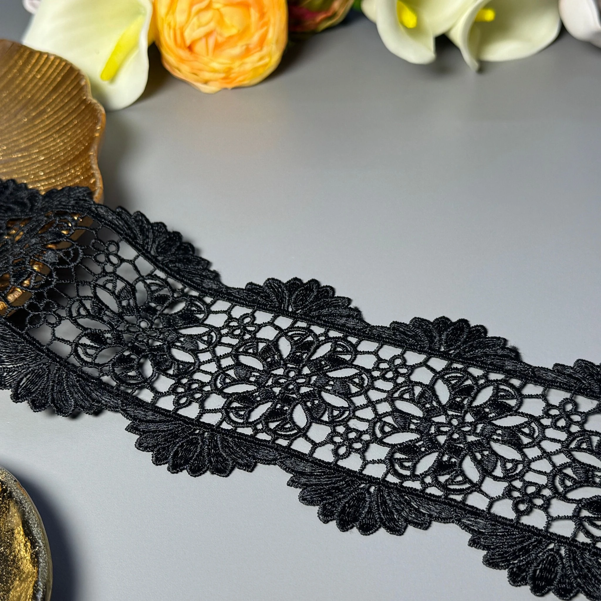 М’яке, міцне й зносостійке мереживо з поліестеру чудово підходить для оздоблення суконь, блуз, спідниць, білизни, аксесуарів та декору.