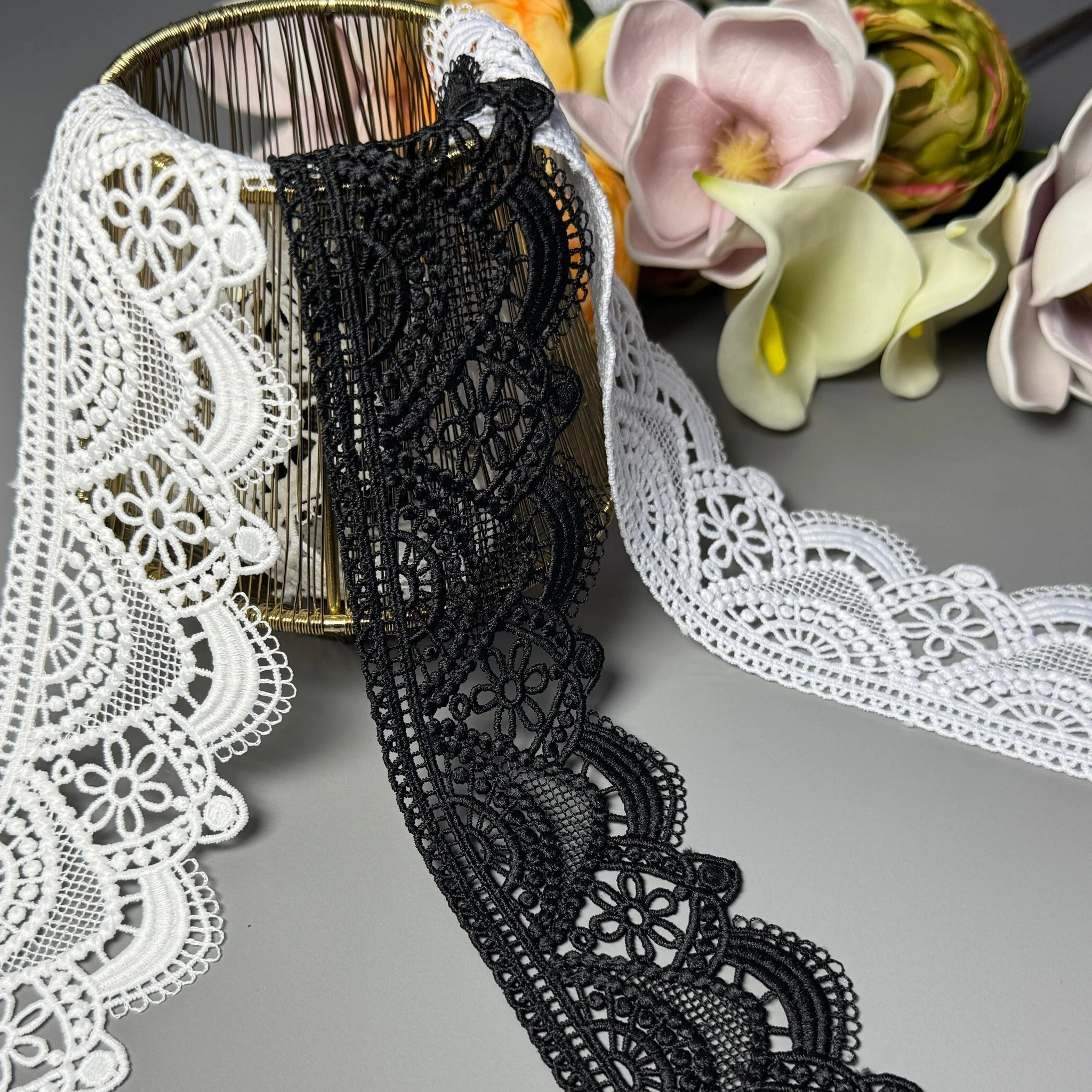 М’яке, міцне й зносостійке мереживо з поліестеру чудово підходить для оздоблення суконь, блуз, спідниць, білизни, аксесуарів та декору.