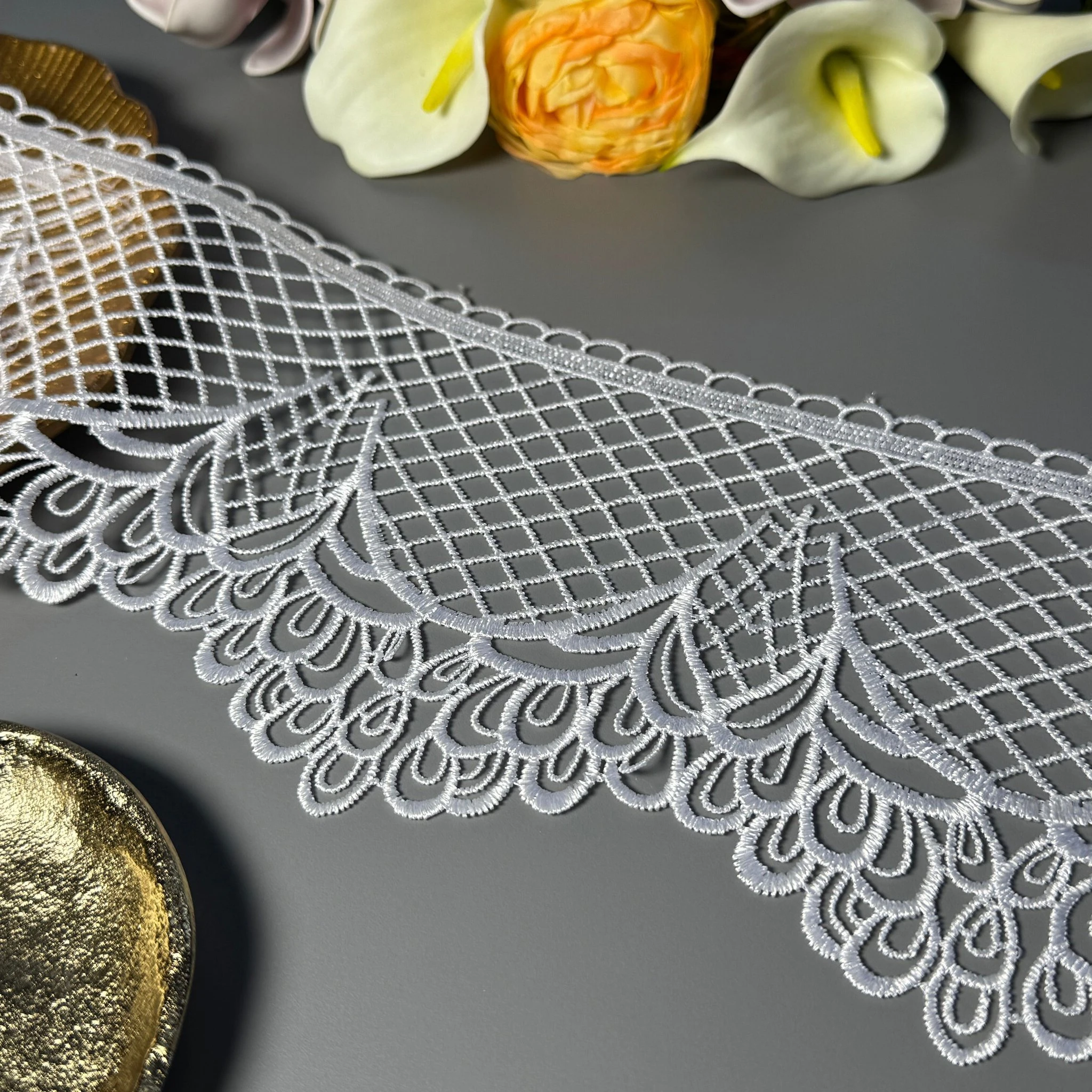 М’яке, міцне й зносостійке мереживо з поліестеру чудово підходить для оздоблення суконь, блуз, спідниць, білизни, аксесуарів та декору.