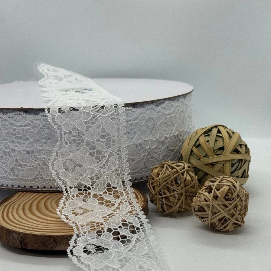 Мереживо поліестр кольорове «Квітка спокуси» 6 см (1 м.), 1 білий