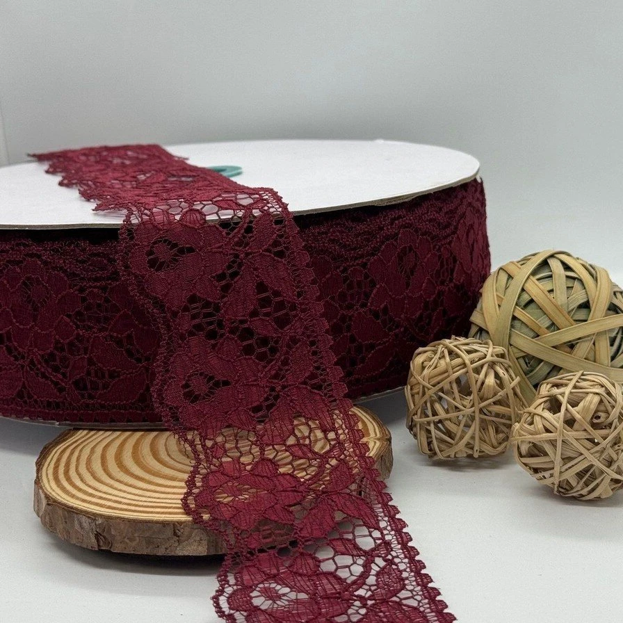Мереживо поліестр кольорове «Квітка спокуси» 6 см (1 м.), 11 бордовий