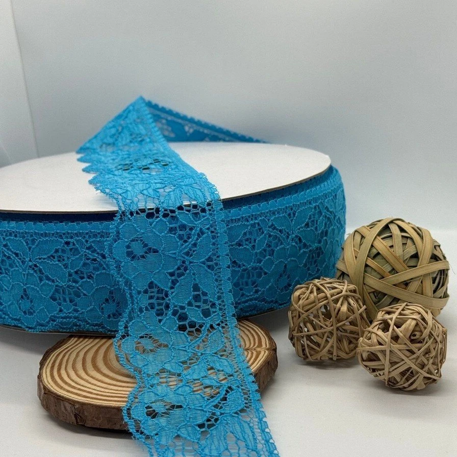 Мереживо поліестр кольорове «Квітка спокуси» 6 см (1 м.), 14 лазурний