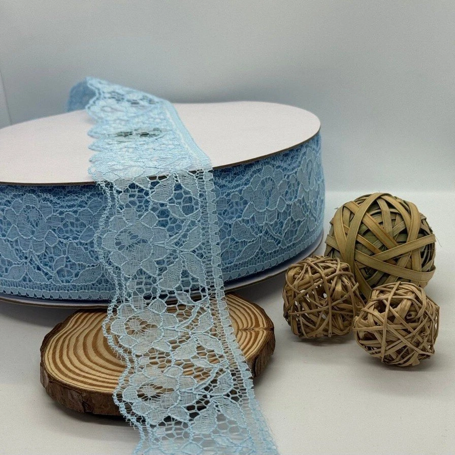 Мереживо поліестр кольорове «Квітка спокуси» 6 см (1 м.), 7 блакитний