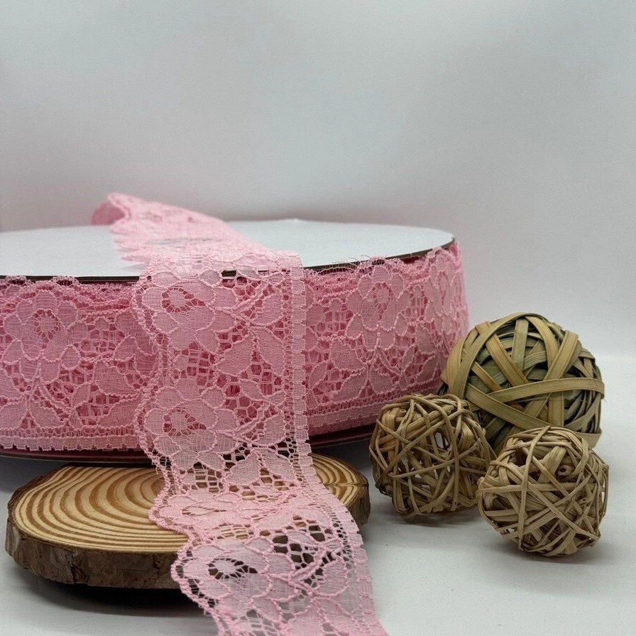 Мереживо поліестр кольорове «Квітка спокуси» 6 см (1 м.), 8 рожевий
