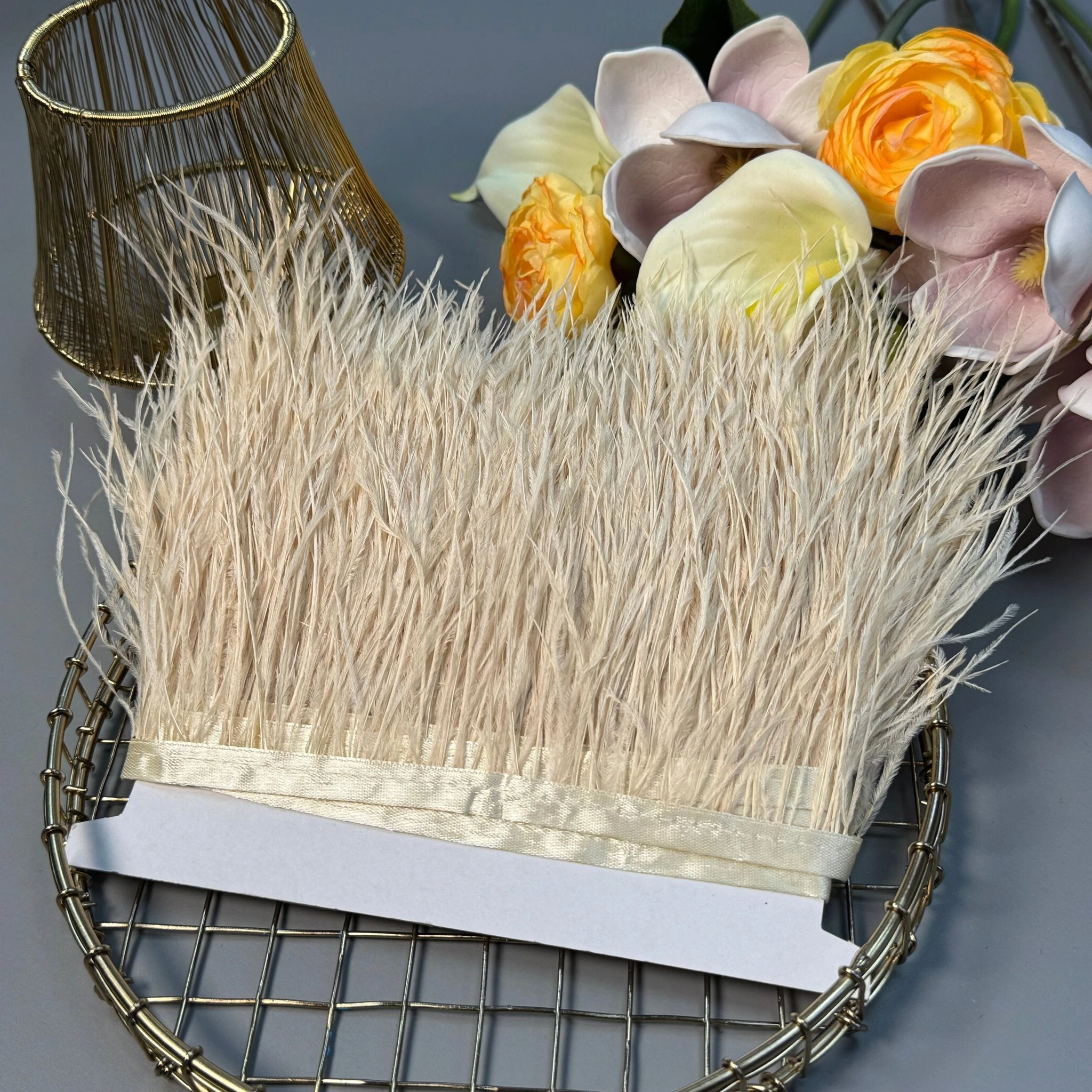 Натуральне пір'я на тасьмі 7-10 см (1 метр), 27 бежевий