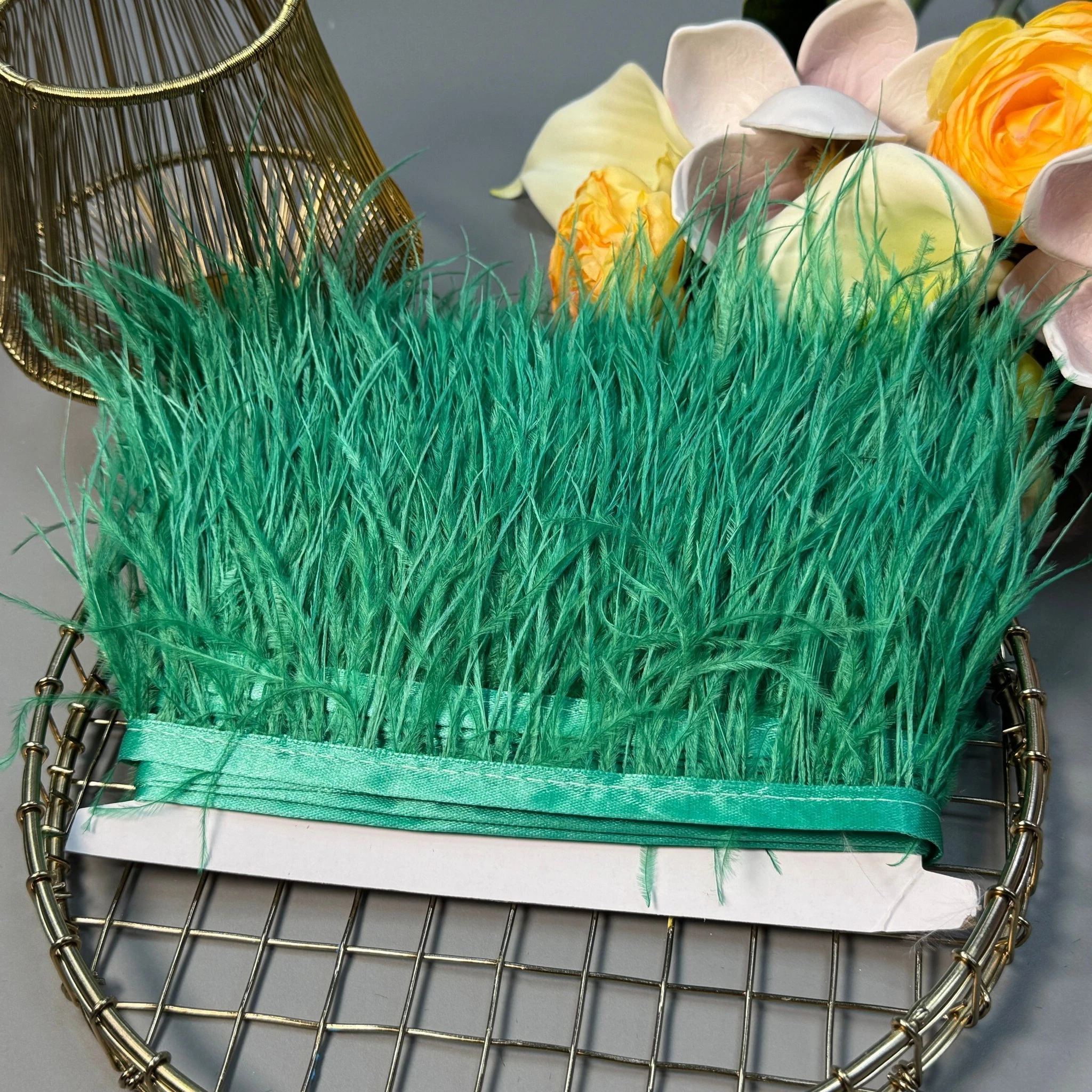 Натуральне пір'я на тасьмі 7-10 см (1 метр), 38 зелений