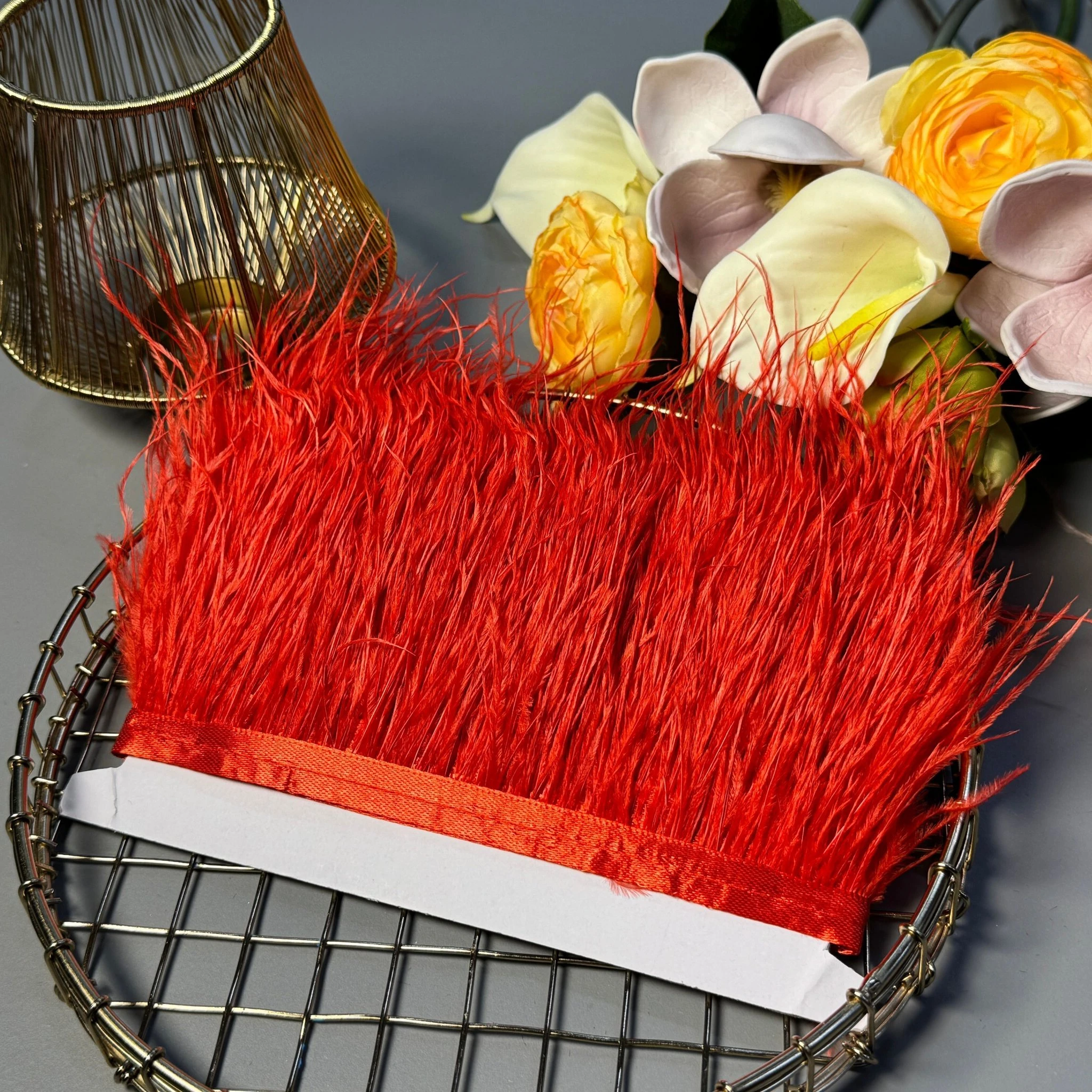 Натуральне пір'я на тасьмі 7-10 см (1 метр), світлий червоний