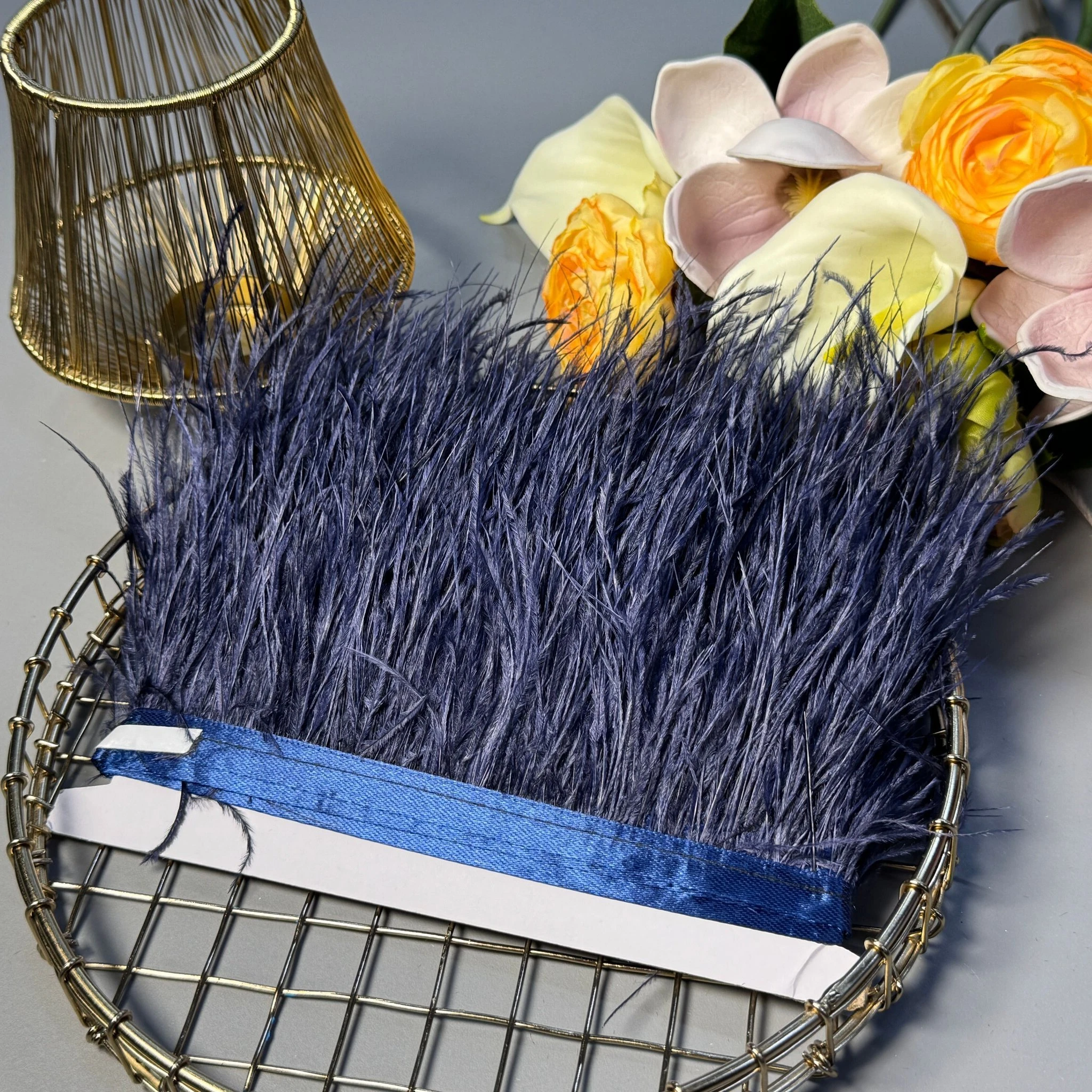 Натуральне пір'я на тасьмі 7-10 см (1 метр), темно синій