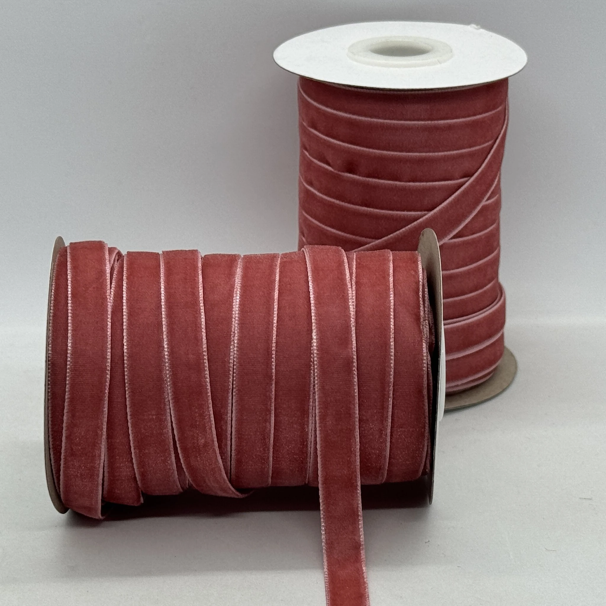 Оксамитова стрічка 1 см (25 ярдів/22,75 м.), 10 рожева пудра