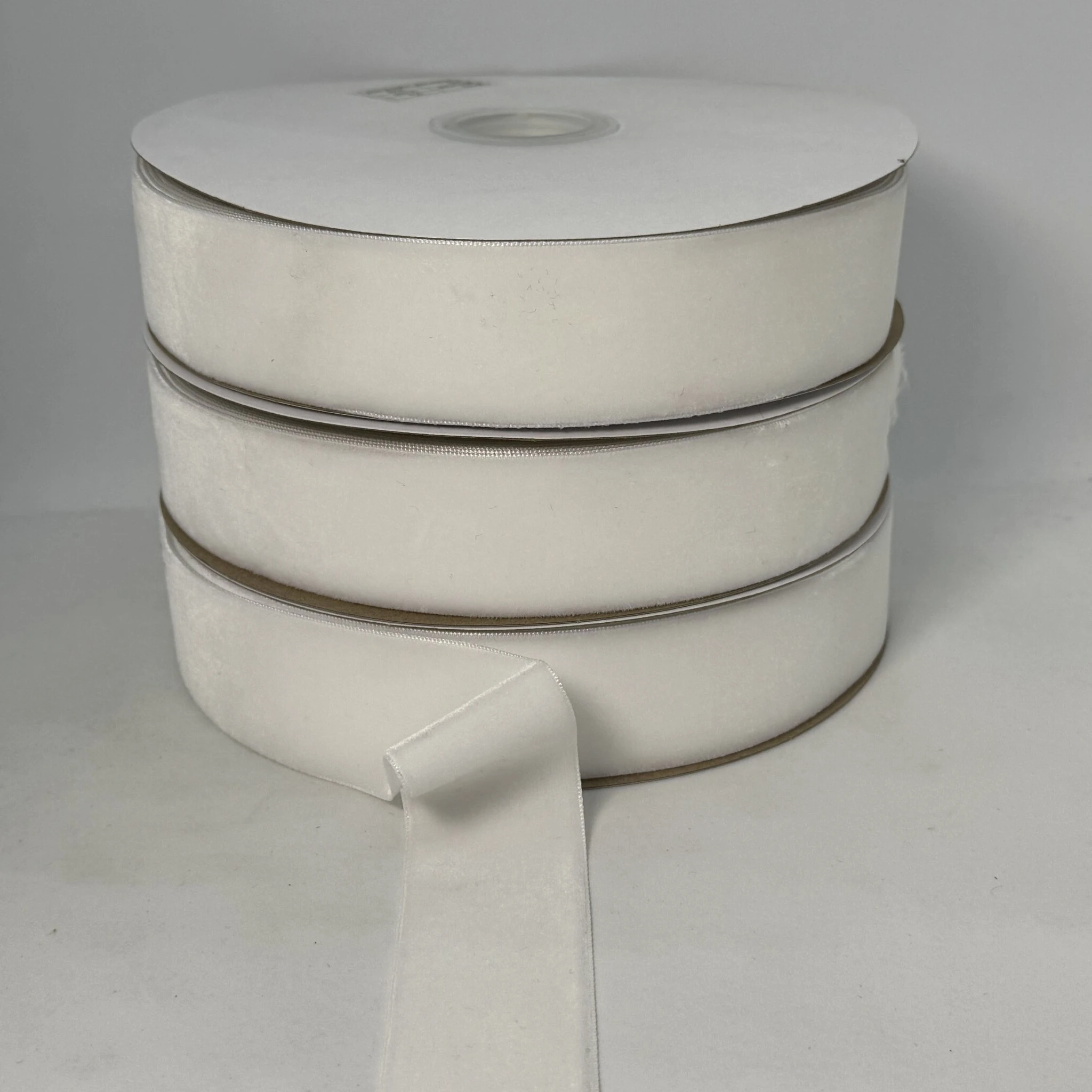 Оксамитова стрічка 3.8 см (25 ярдів/22,75 м.), 02 теплий білий
