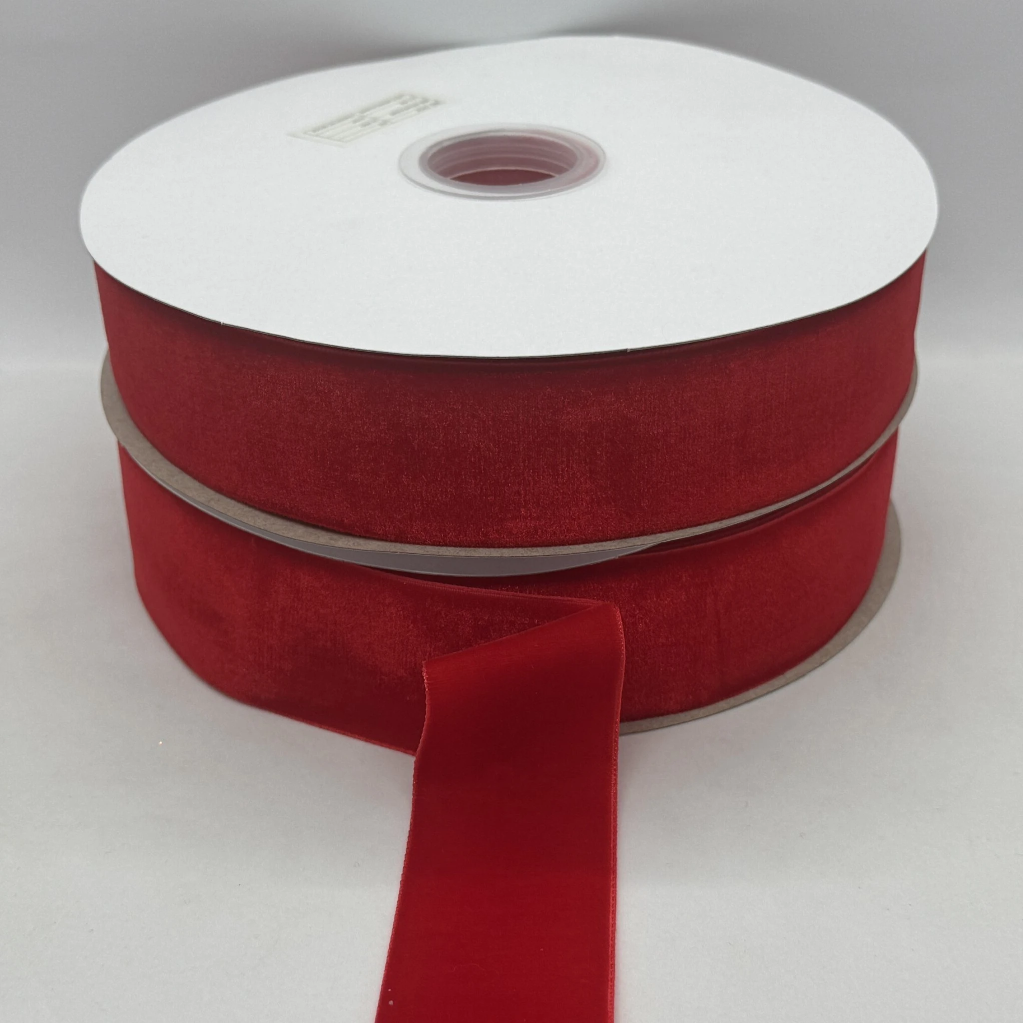 Оксамитова стрічка 3.8 см (25 ярдів/22,75 м.), 40 світлий червоний