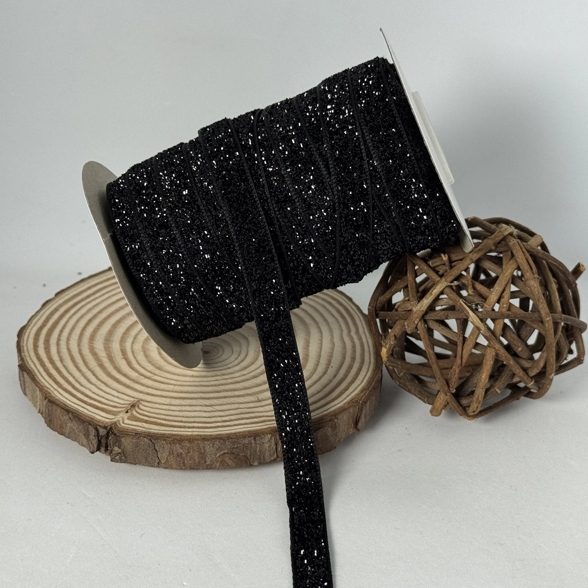 Оксамитова стрічка люрекс 1 см (25 ярдів/22,75 м.), 08 чорний