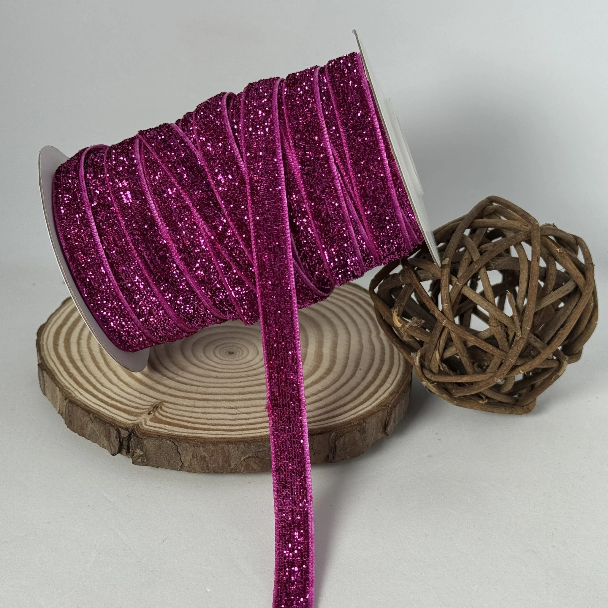Оксамитова стрічка люрекс 1 см (25 ярдів/22,75 м.), 23 малиновий