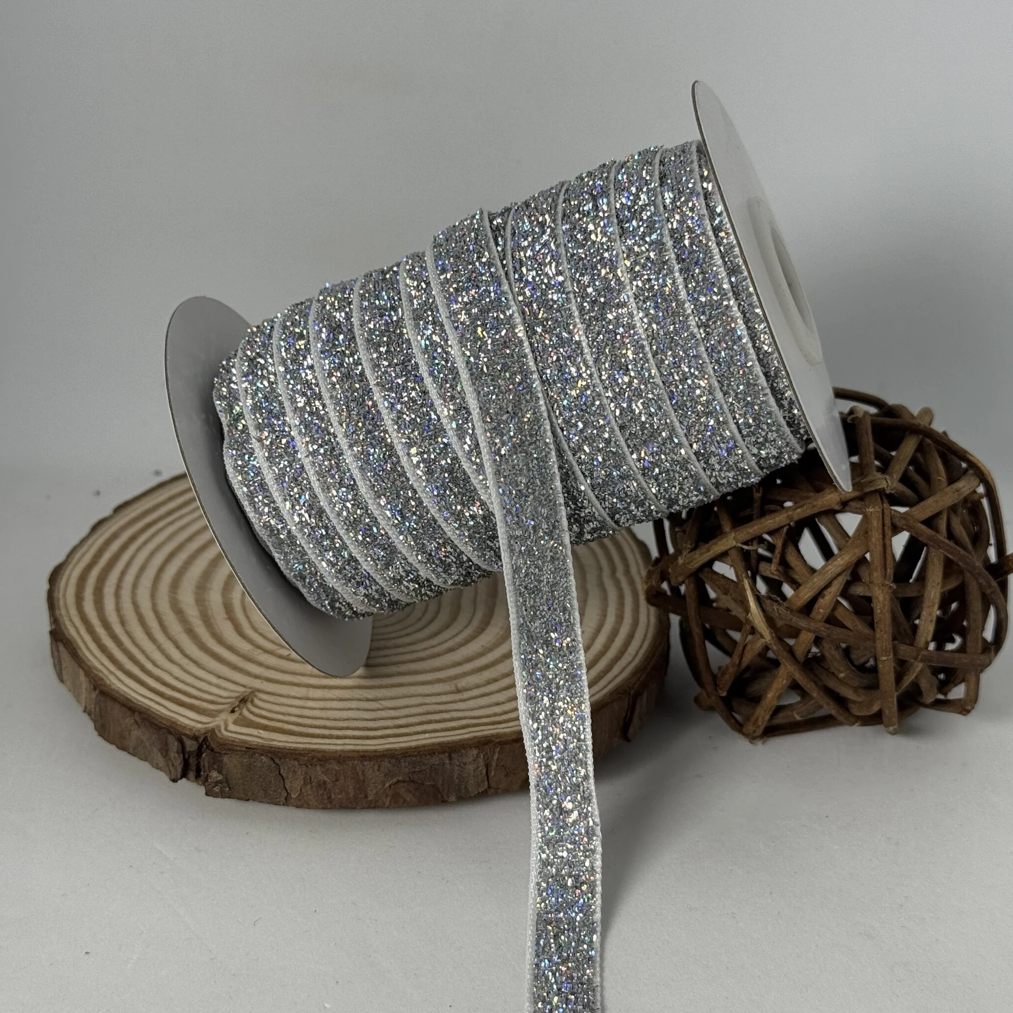 Оксамитова стрічка люрекс 1 см (25 ярдів/22,75 м.), 30 срібло