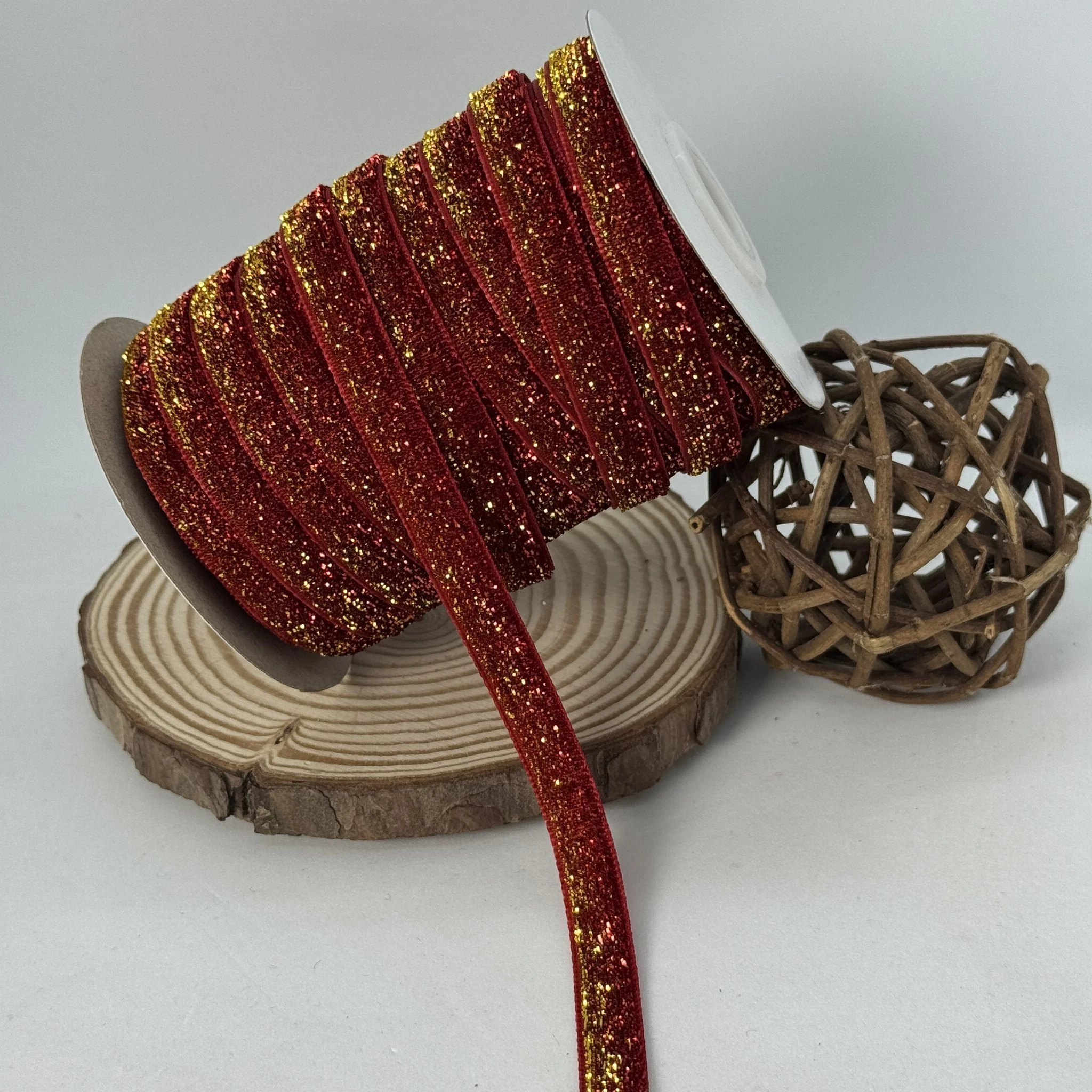 Оксамитова стрічка люрекс 1 см (25 ярдів/22,75 м.), 32 червоний + золото