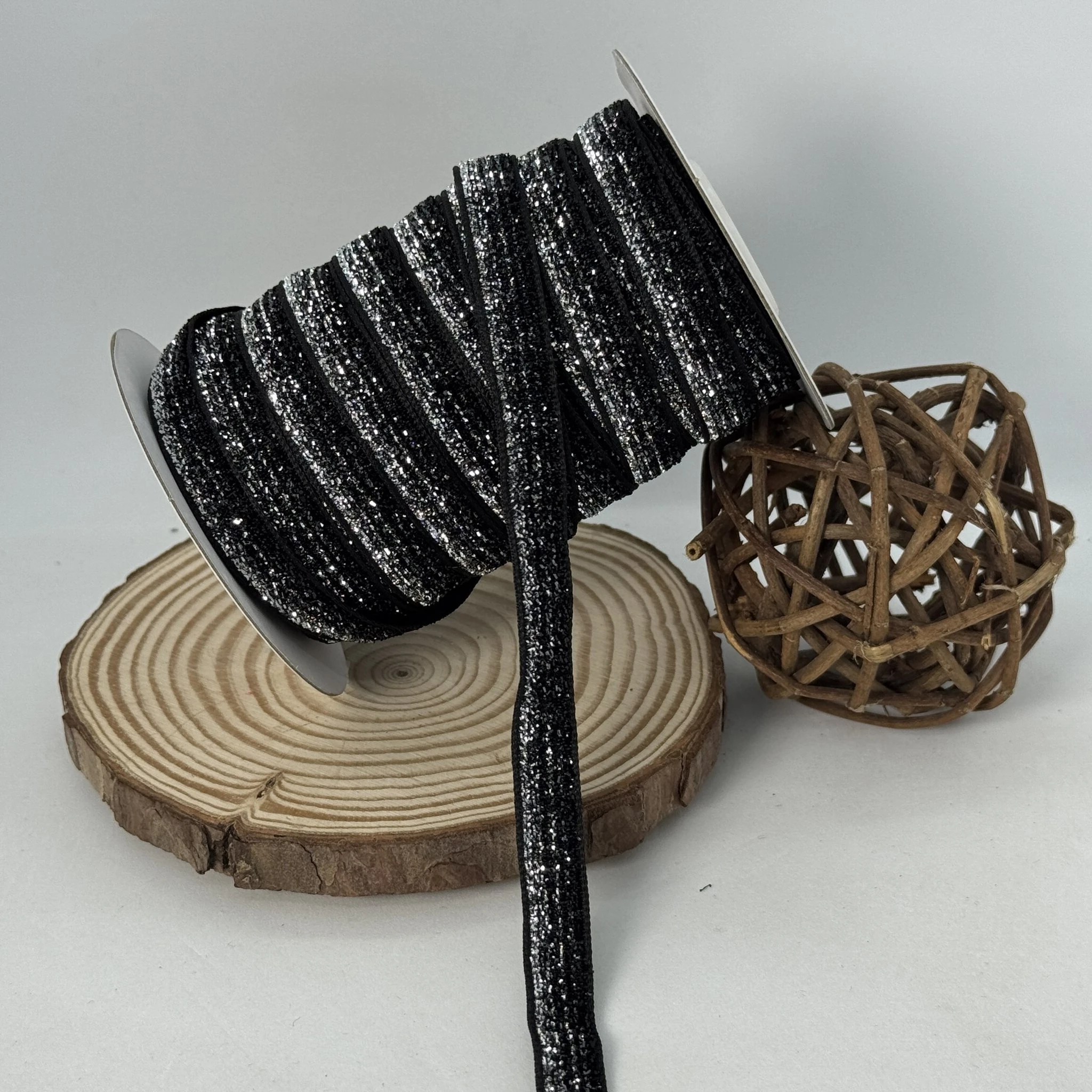 Оксамитова стрічка люрекс 1 см (25 ярдів/22,75 м.), 45 чорний + срібло