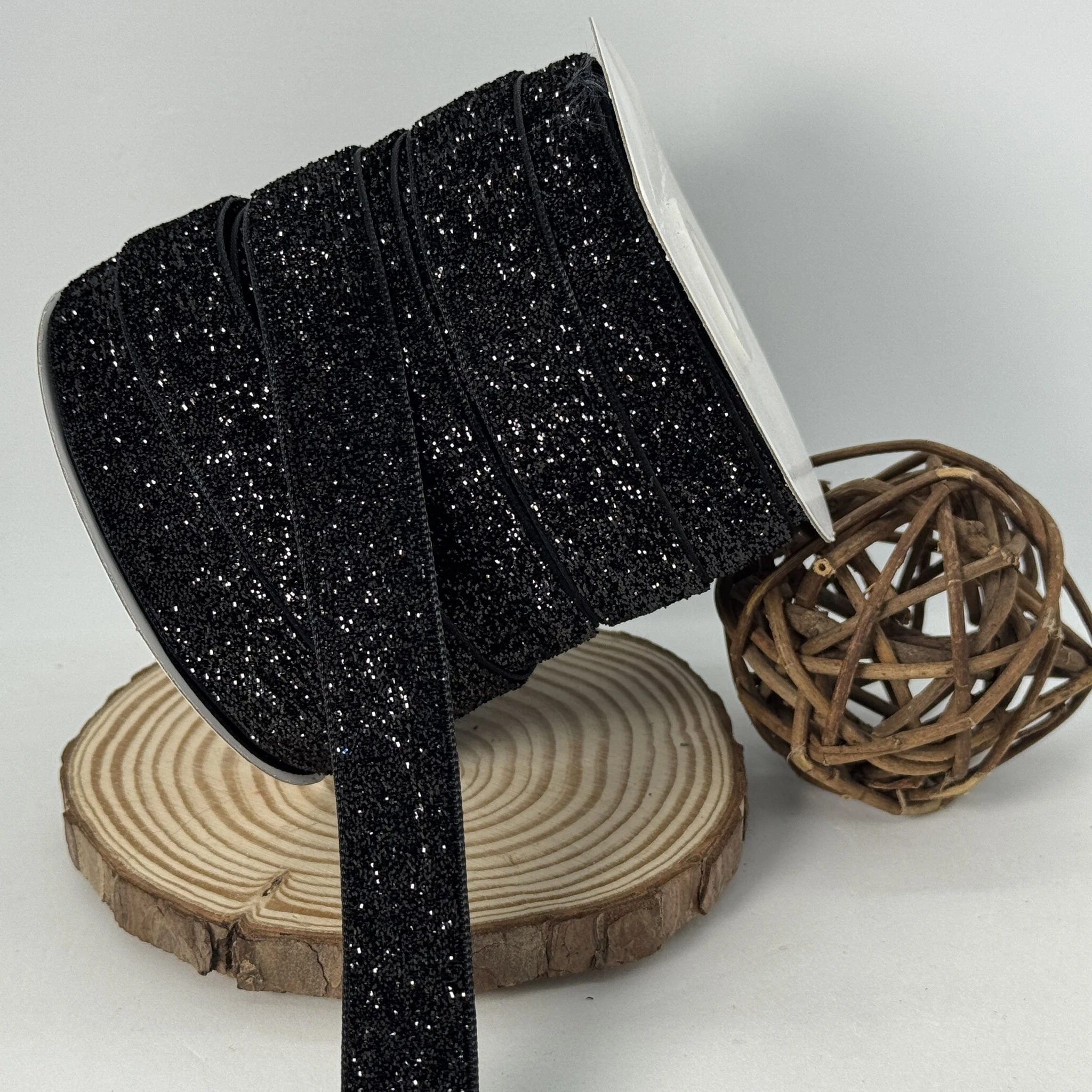 Оксамитова стрічка люрекс 2 см (25 ярдів/22,75 м.), 08 чорний