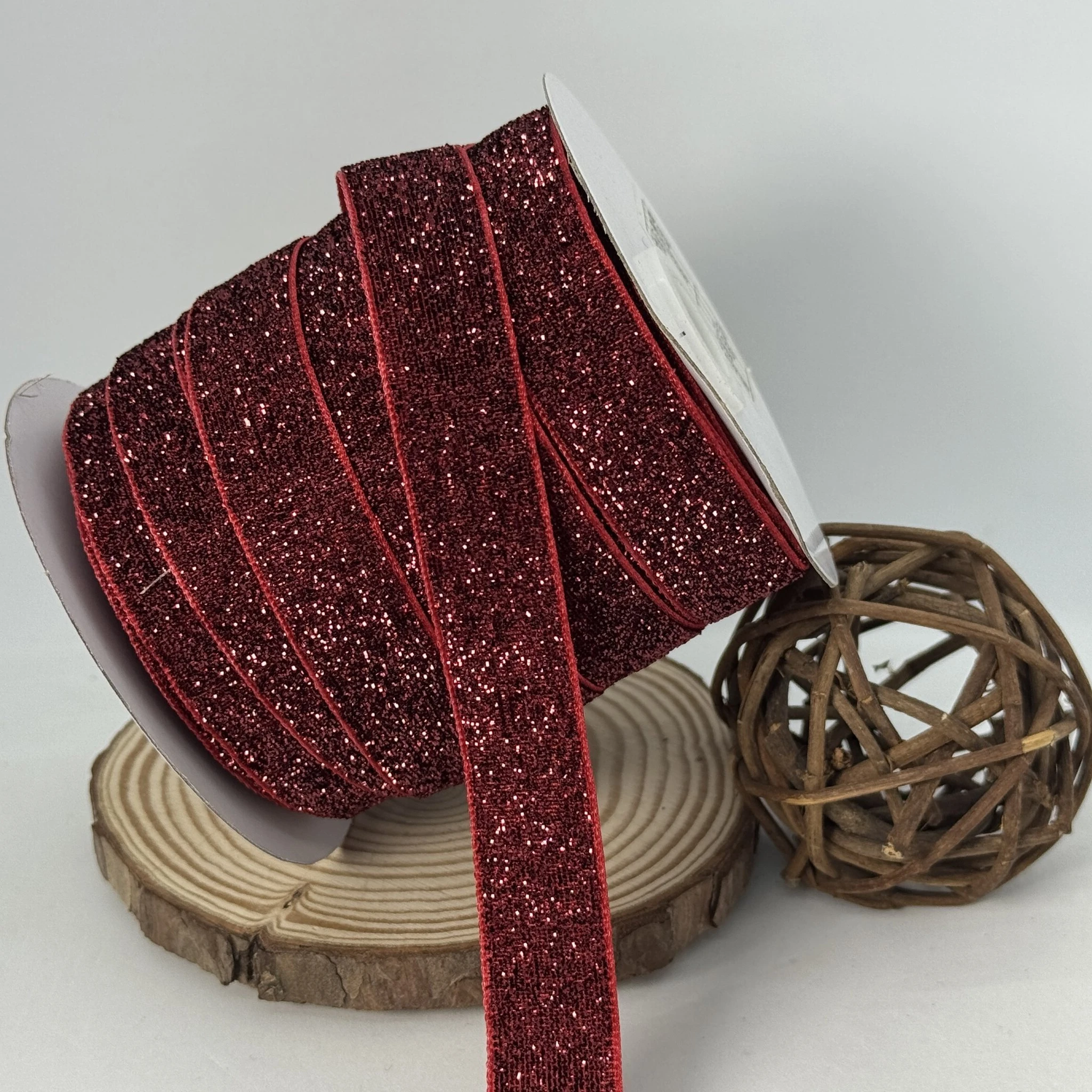 Оксамитова стрічка люрекс 2 см (25 ярдів/22,75 м.), 10 бордовий