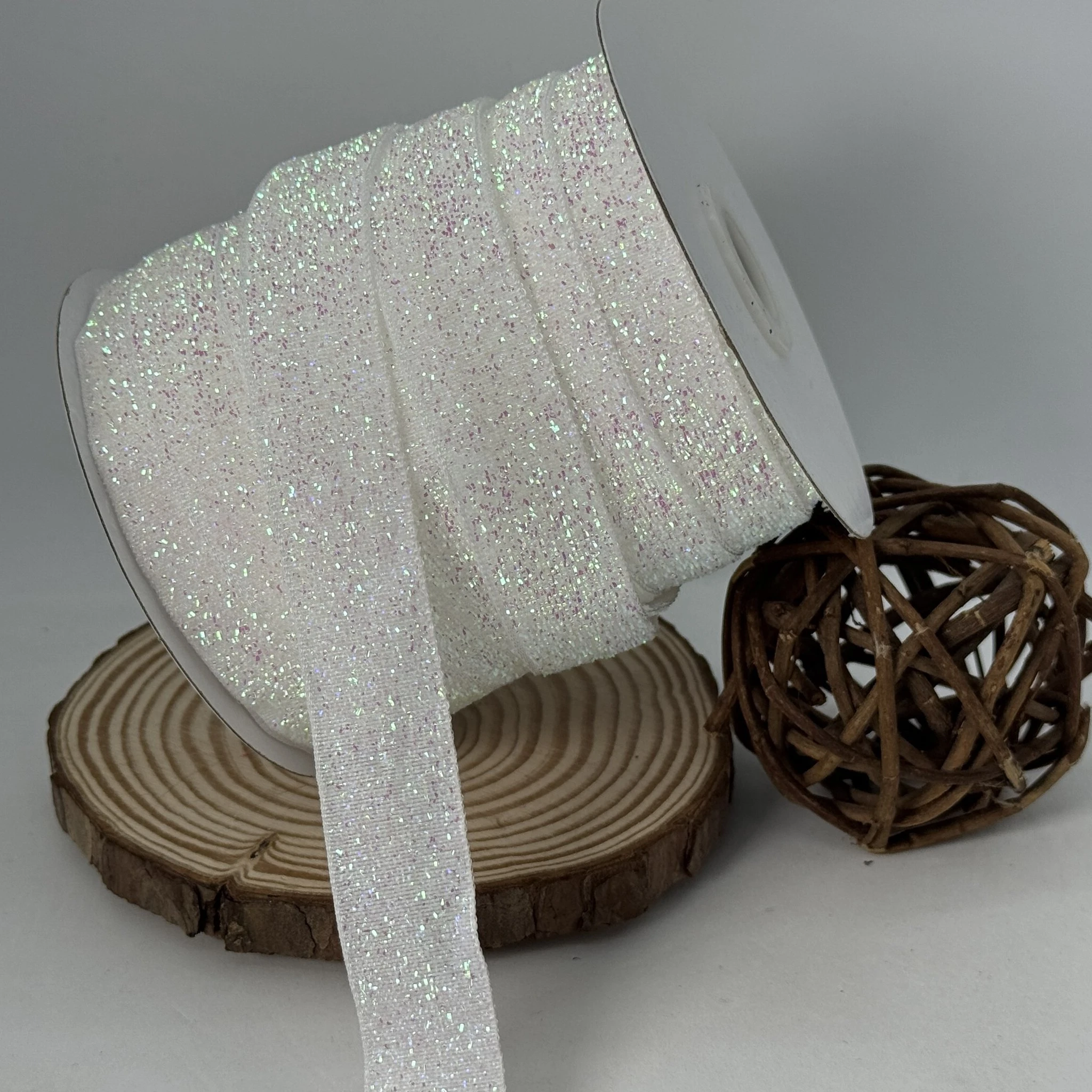 Оксамитова стрічка люрекс 2 см (25 ярдів/22,75 м.), 28 білий АВ