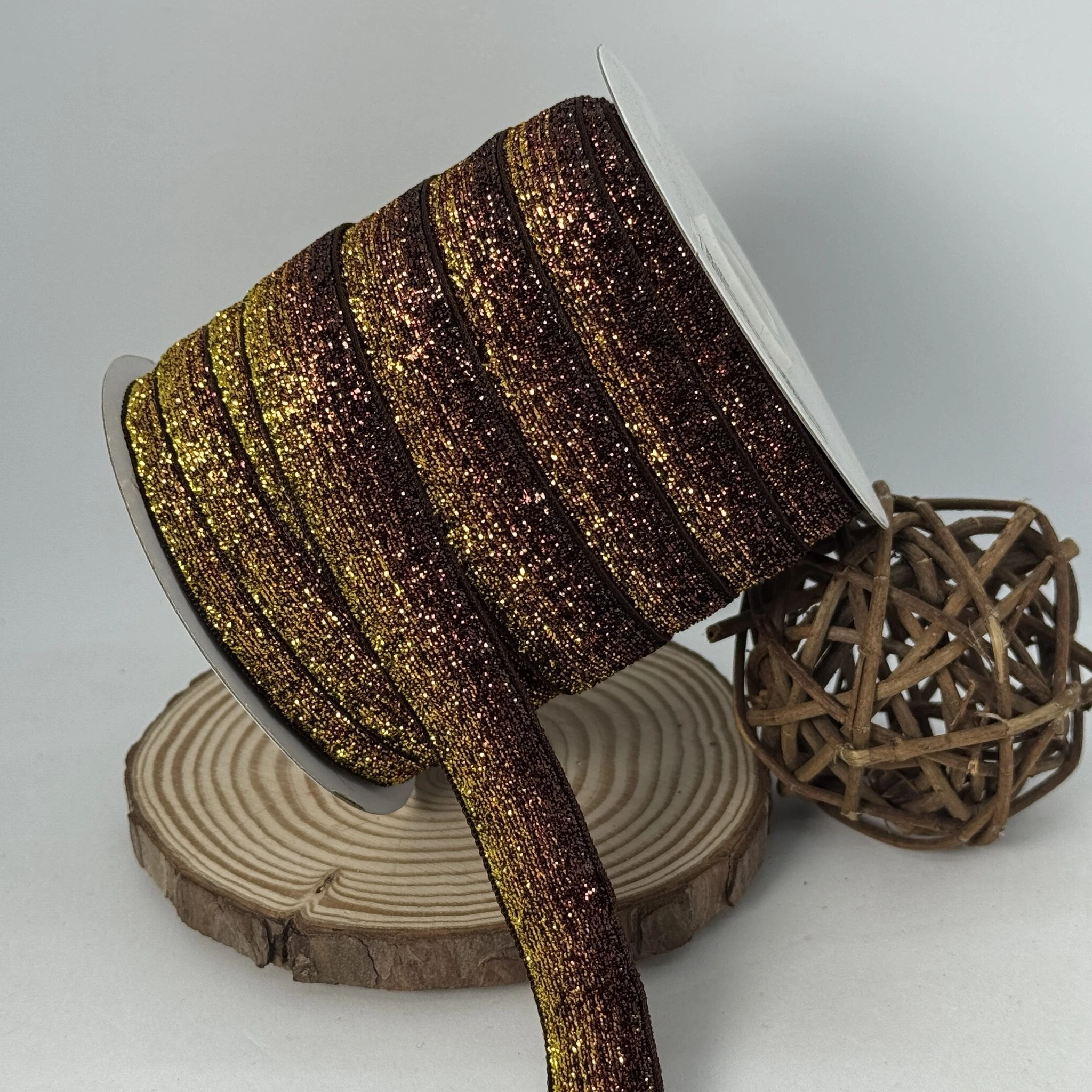 Оксамитова стрічка люрекс 2 см (25 ярдів/22,75 м.), 31 коричневий + золото