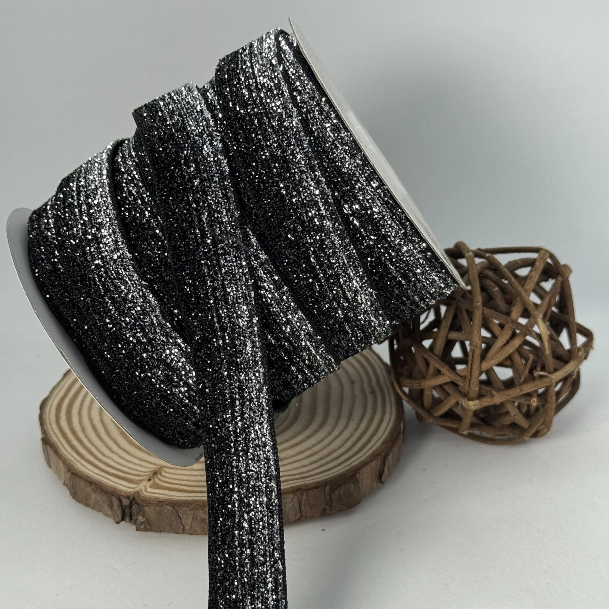 Оксамитова стрічка люрекс 2 см (25 ярдів/22,75 м.), 45 чорний + срібло