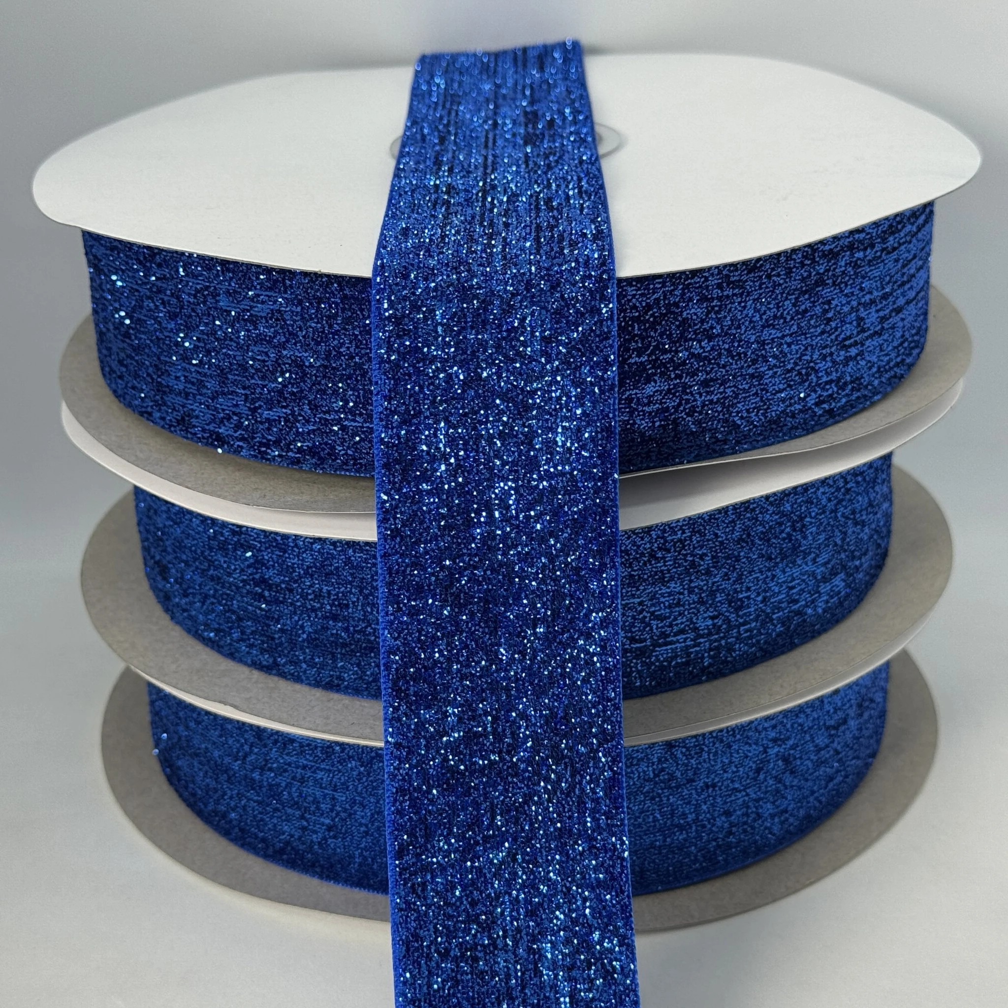 Оксамитова стрічка люрекс 3.8 см (25 ярдів/22,75 м.), 01 електрик
