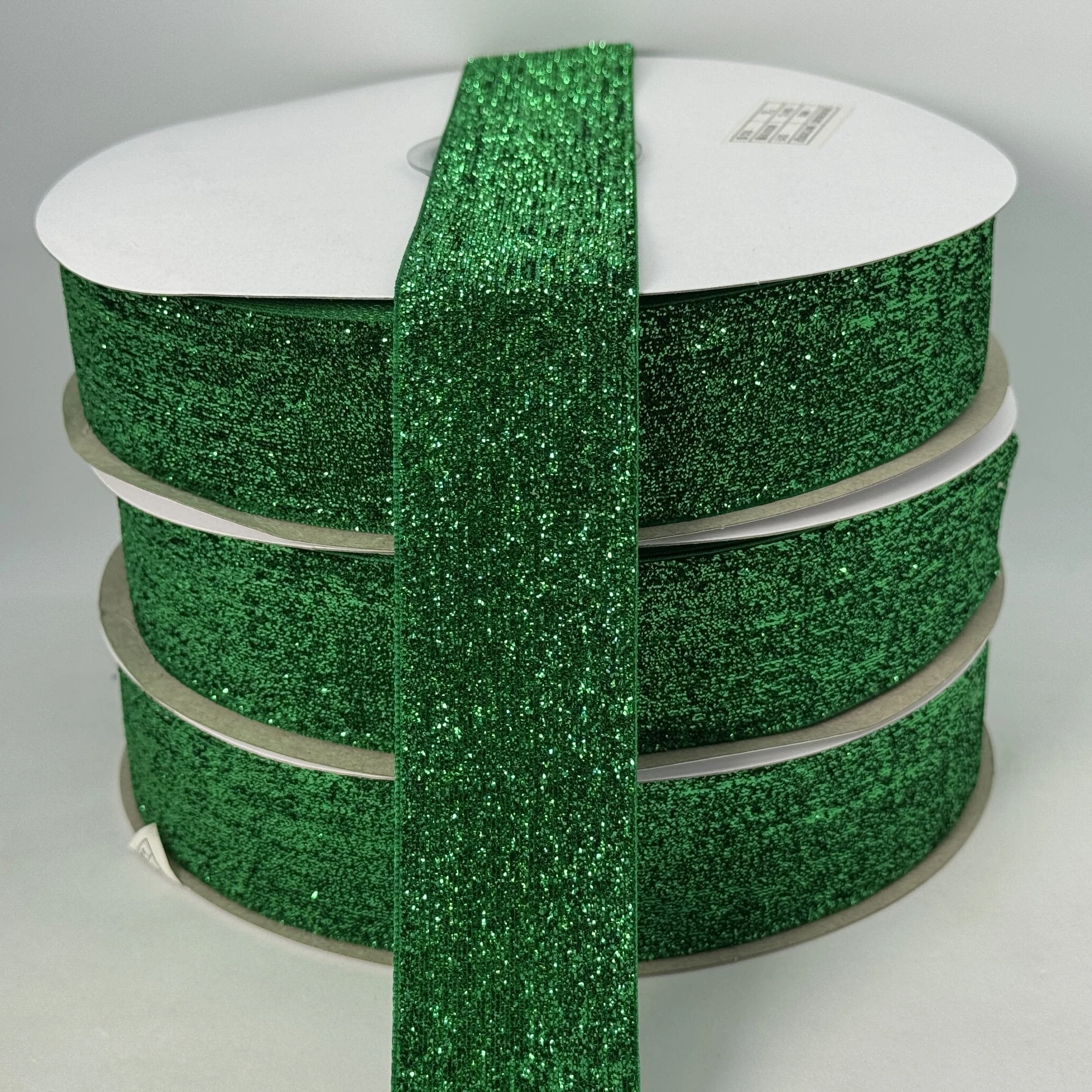 Оксамитова стрічка люрекс 3.8 см (25 ярдів/22,75 м.), 06 зелений