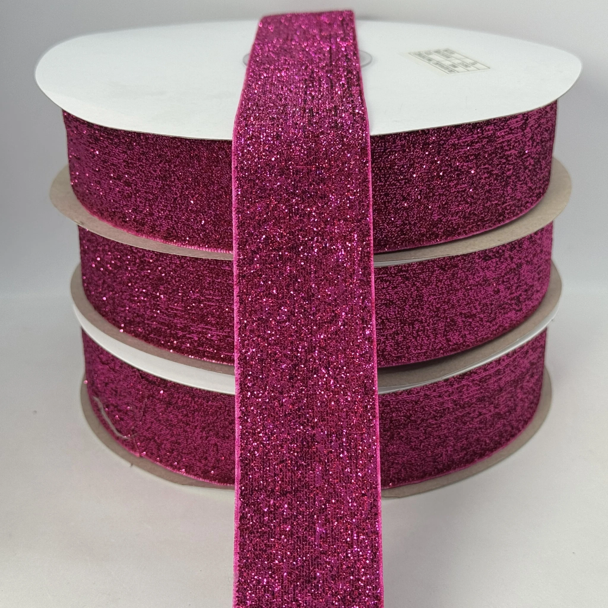 Оксамитова стрічка люрекс 3.8 см (25 ярдів/22,75 м.), 23 малиновий
