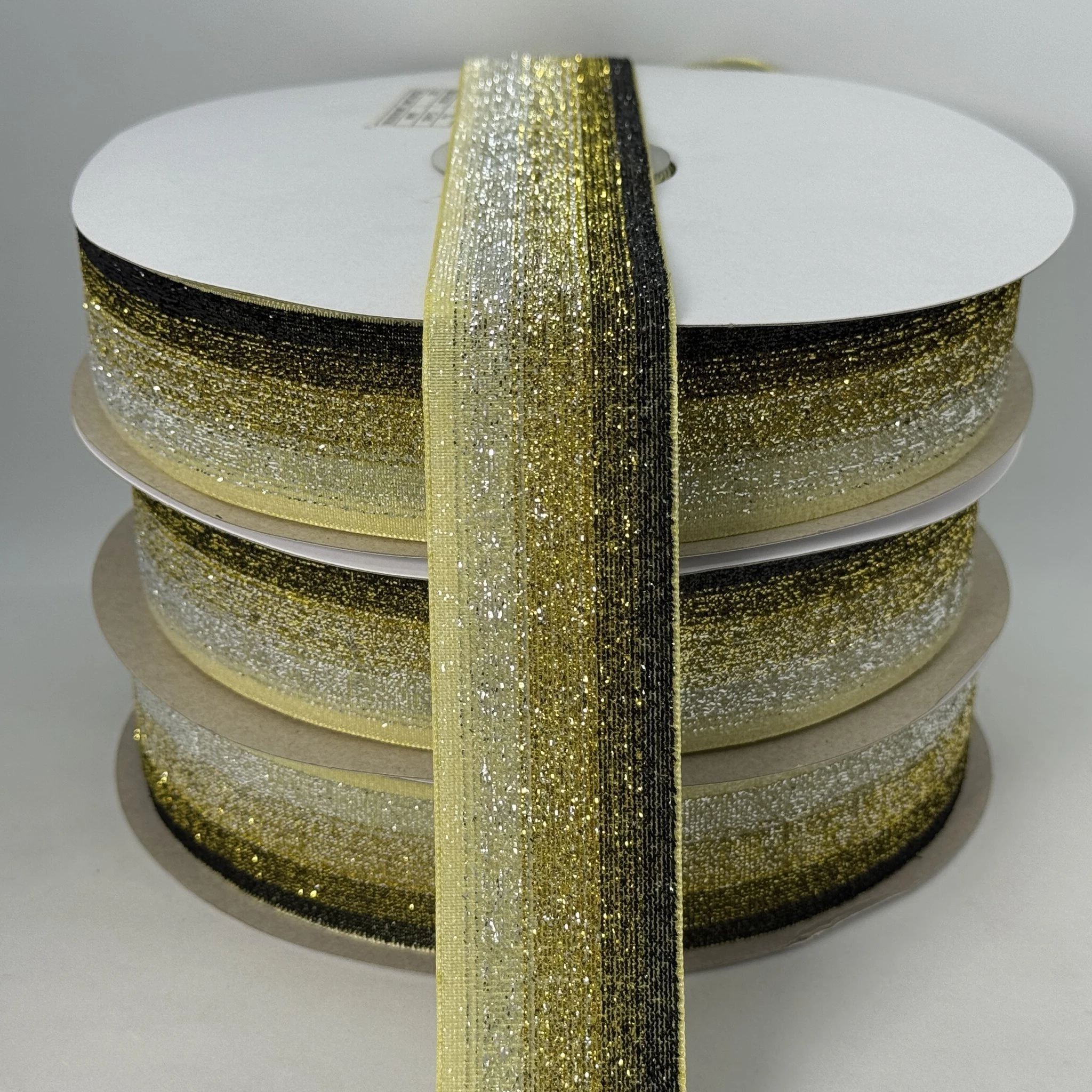 Оксамитова стрічка люрекс 3.8 см (25 ярдів/22,75 м.), 33 жовтий + чорний +золото + срібло