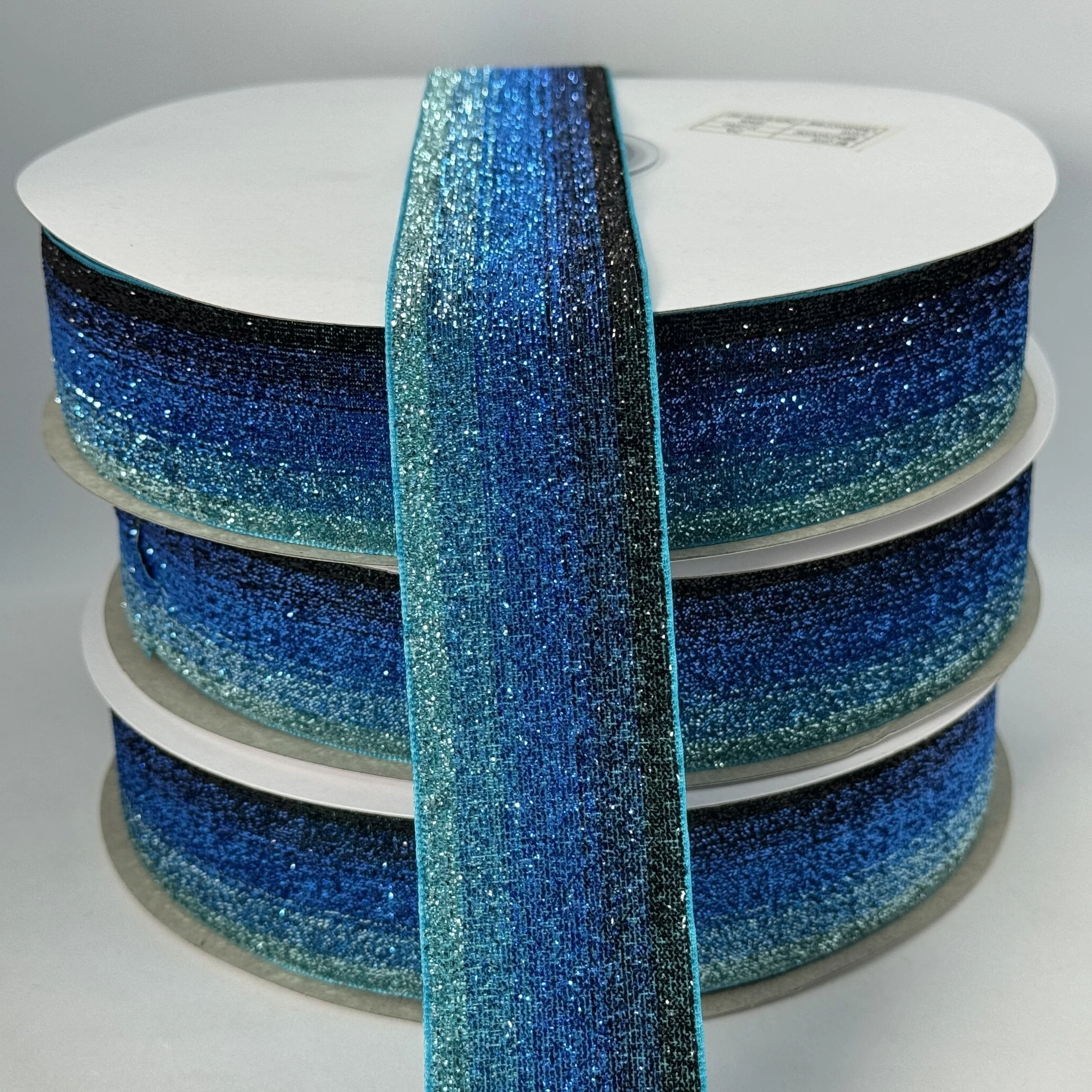 Оксамитова стрічка люрекс 3.8 см (25 ярдів/22,75 м.), 36 синій + бірюза