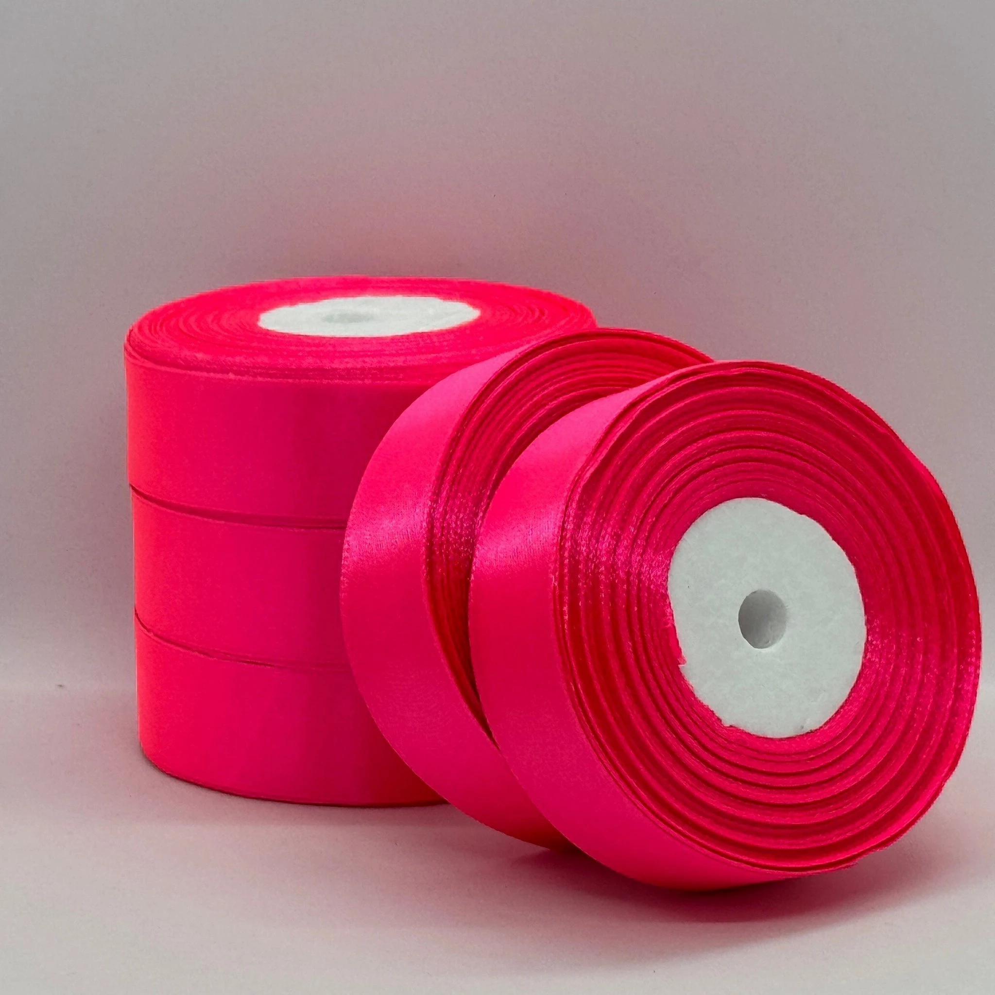 Атласна стрічка 2.5 см (33 м.), 14 неон рожевий