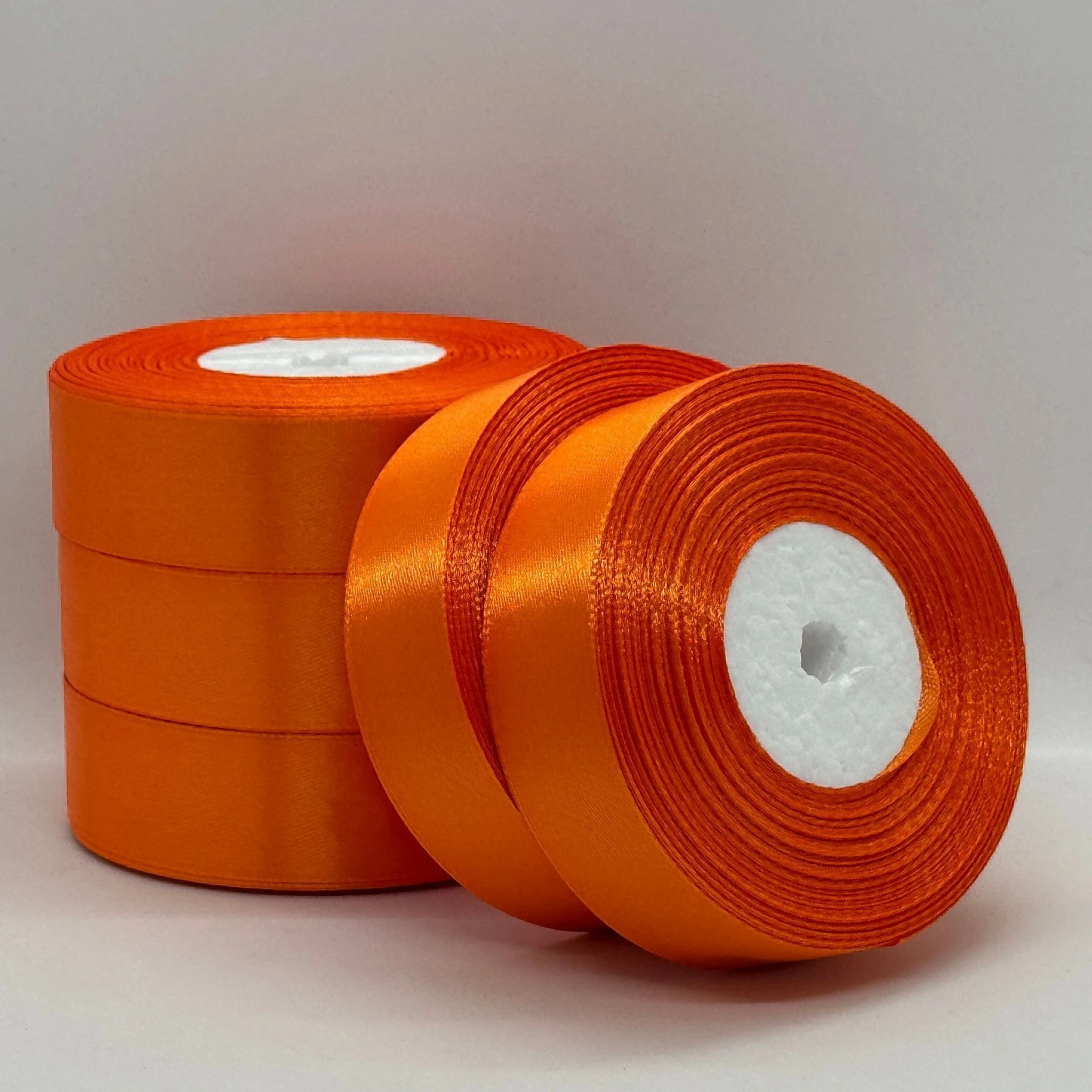 Атласна стрічка 2.5 см (33 м.), 144 сигнально-помаранчевий