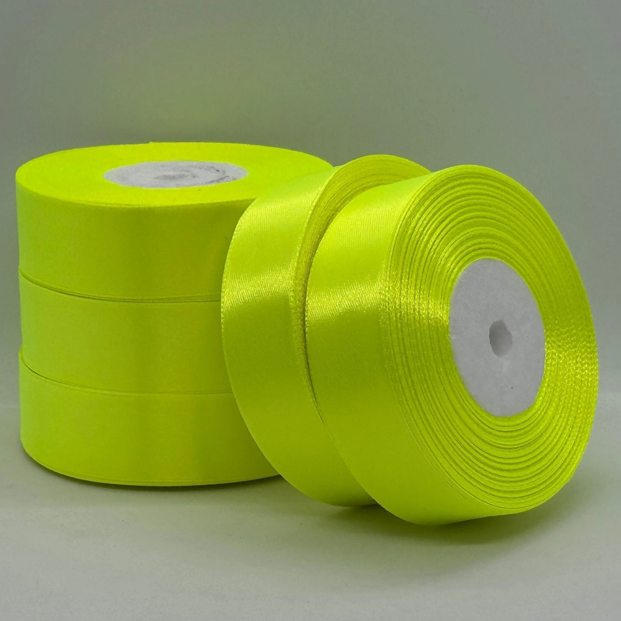 Атласна стрічка 2.5 см (33 м.), 58 неон жовтий