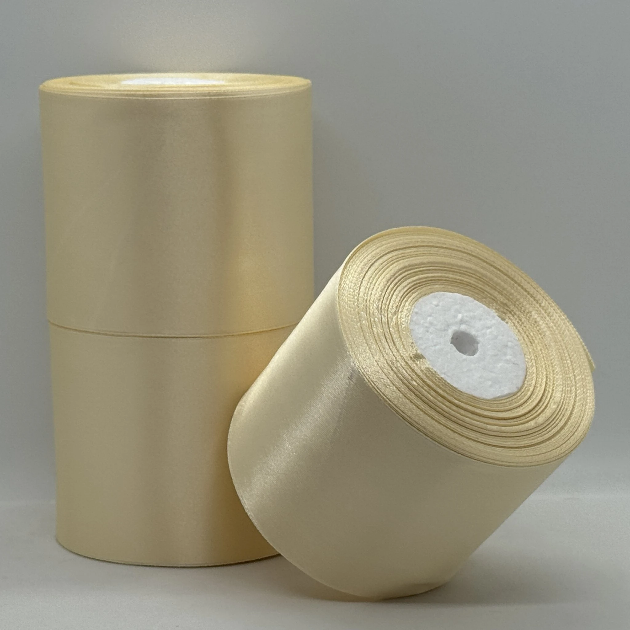 Атласна стрічка 7.5 см (33 м.), 02 темний молочний
