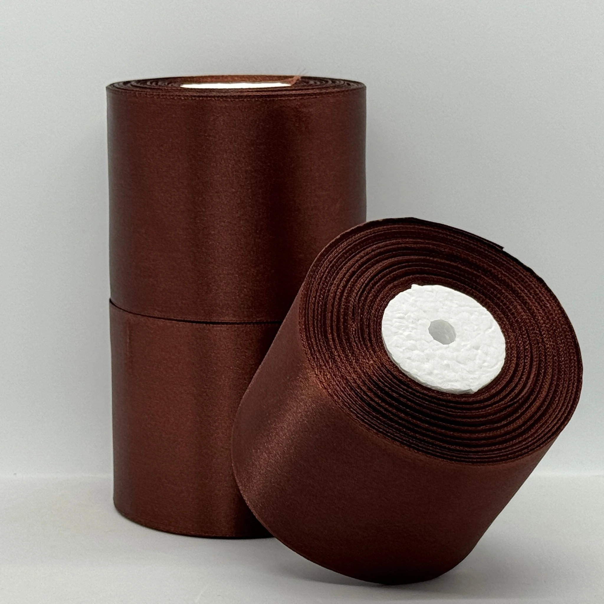 Атласна стрічка 7.5 см (33 м.), 70 шоколад