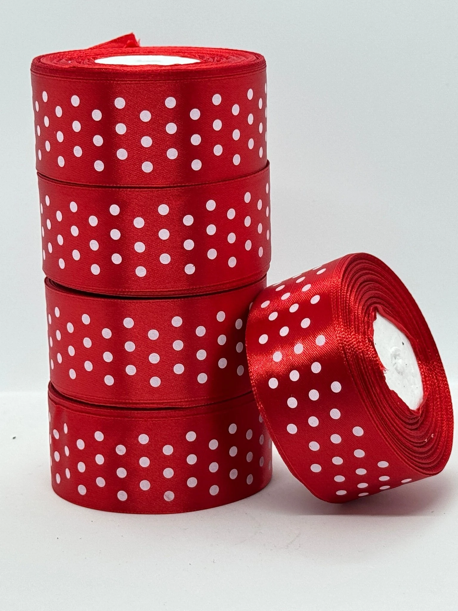 Стрічка атласна в горох 4 см (33 м) — яскравий та стильний елемент для творчості та декору!