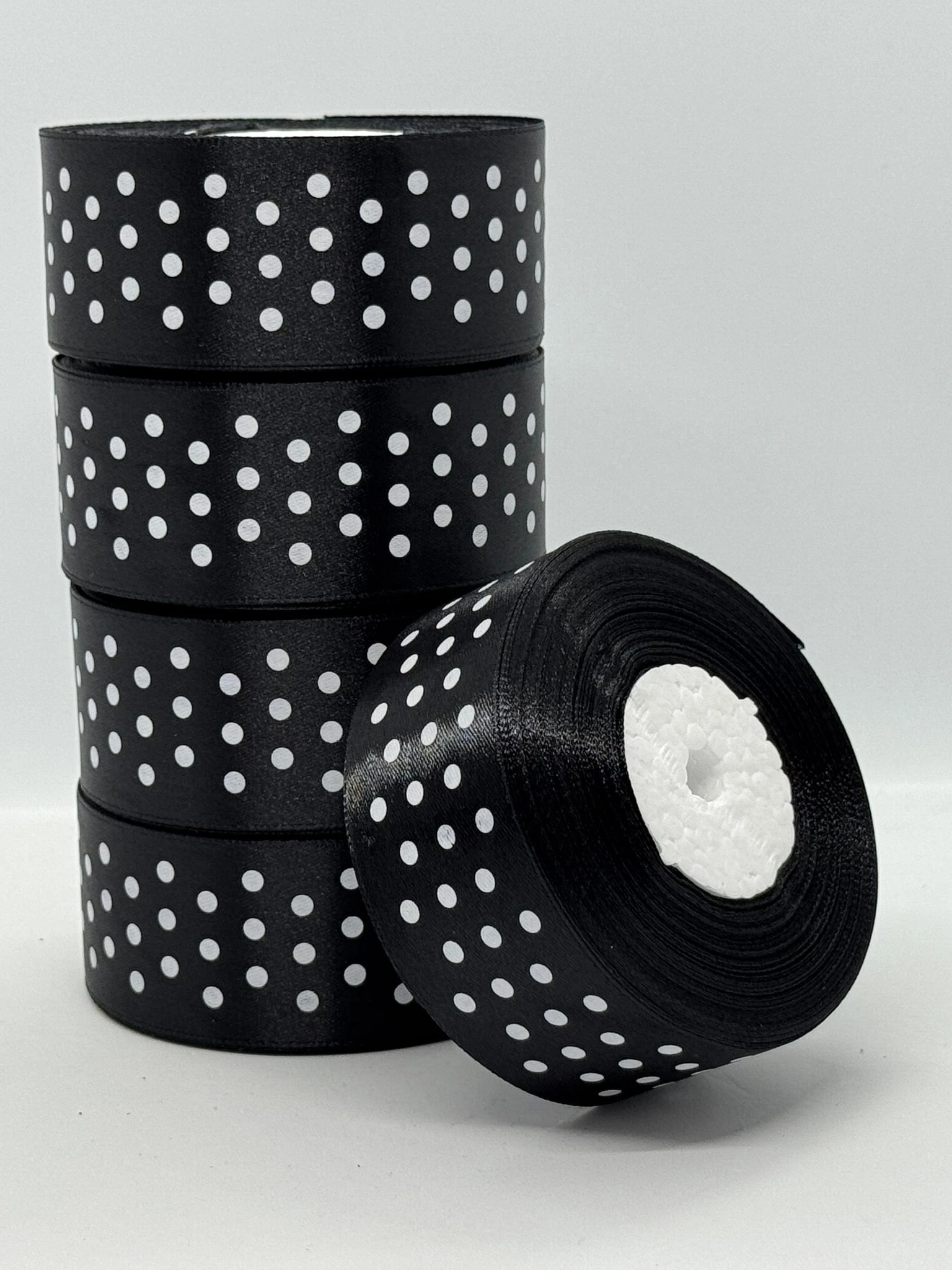 Атласна стрічка в горох 4 см (33 м.), 39 чорний + білий