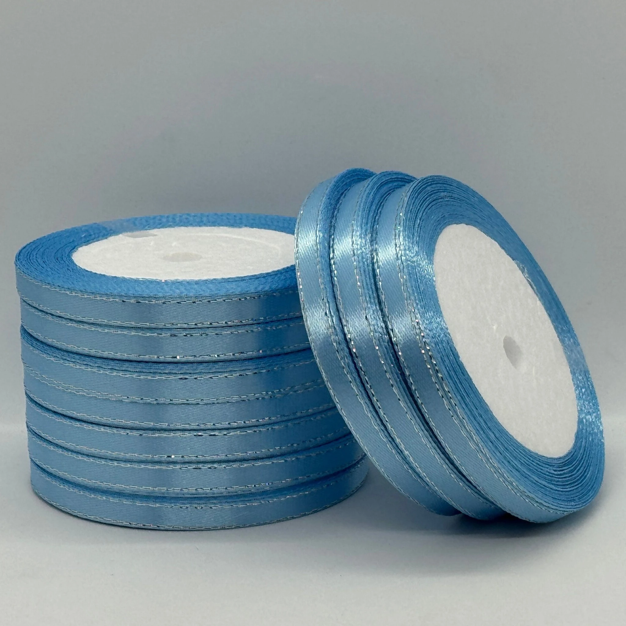 Атласна стрічка з люрекс 0,6 см+срібло (22.75 м.), 187 блакитний