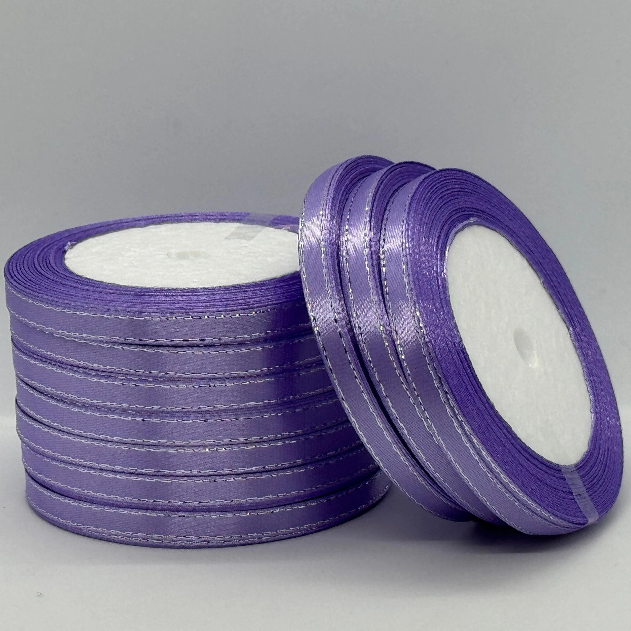 Атласна стрічка з люрекс 0,6 см+срібло (22.75 м.), 21 фіалковий