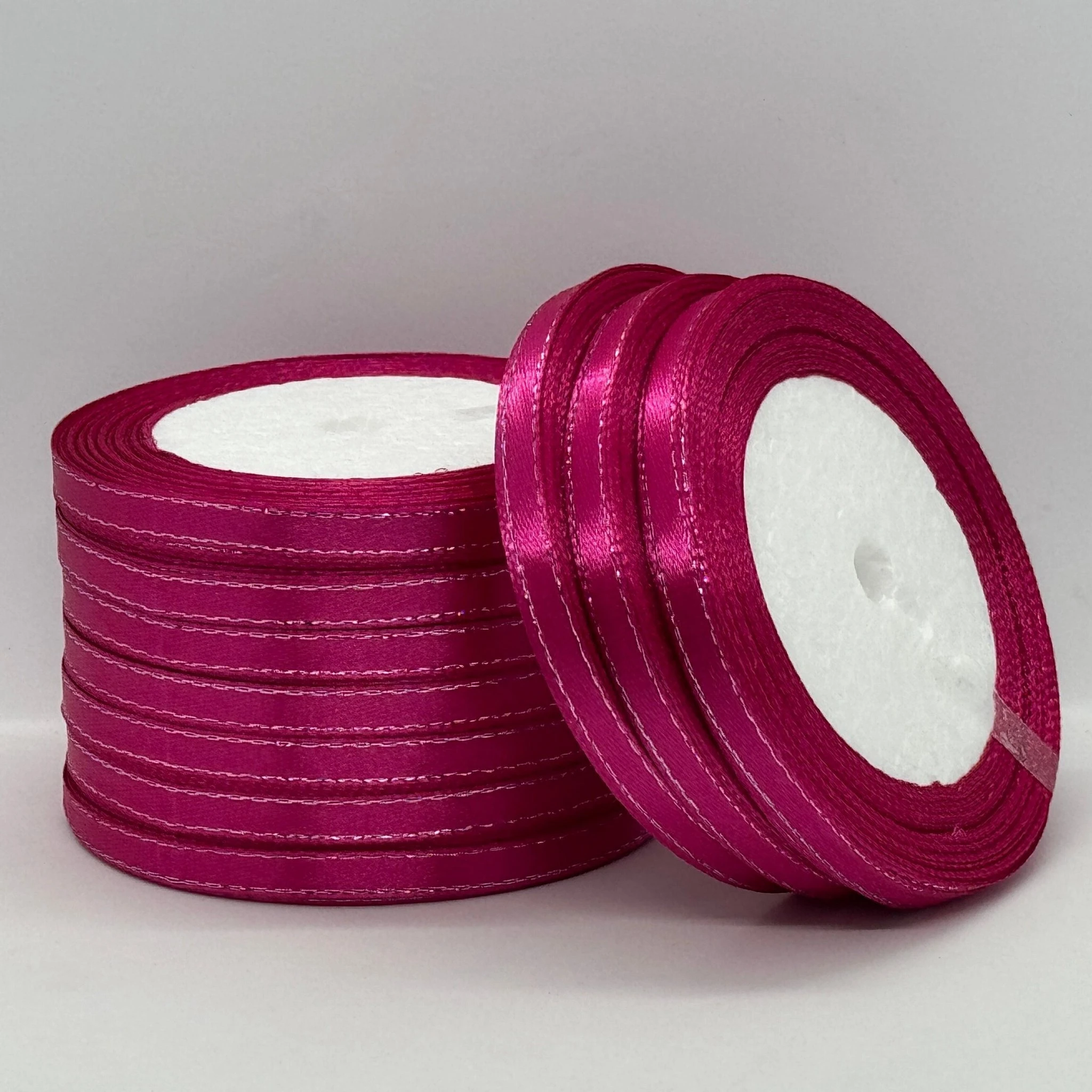 Атласна стрічка з люрекс 0,6 см+срібло (22.75 м.), 27 малиновий